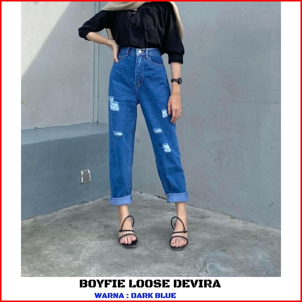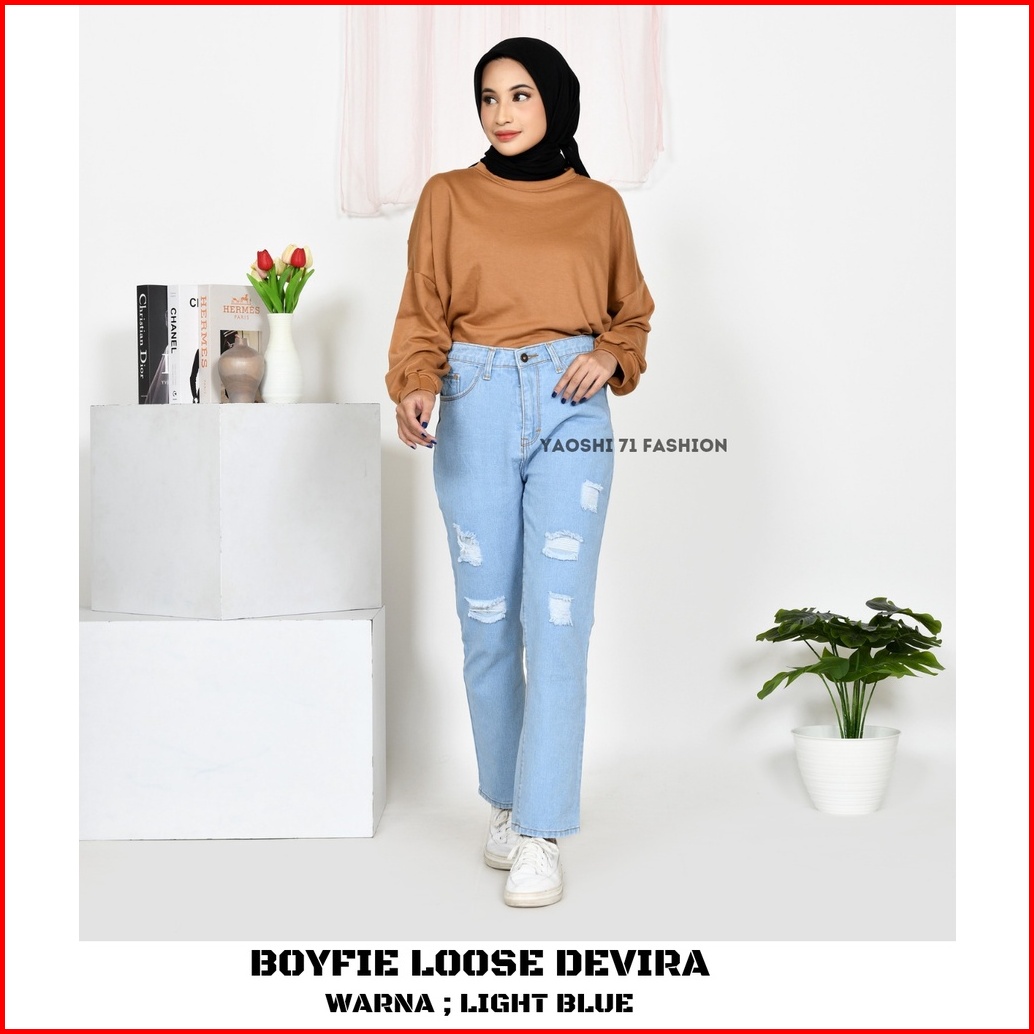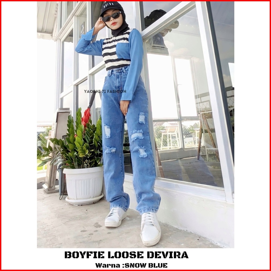 Yaoshi- Celana Jeans Wanita Pinggang Tinggi Devira Boyfie Loose Devira Premium Size 27-34