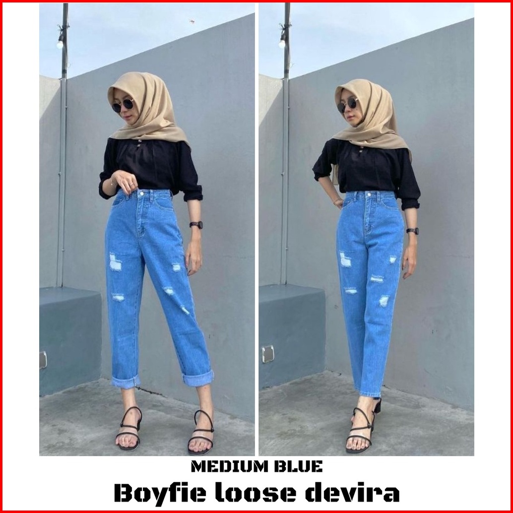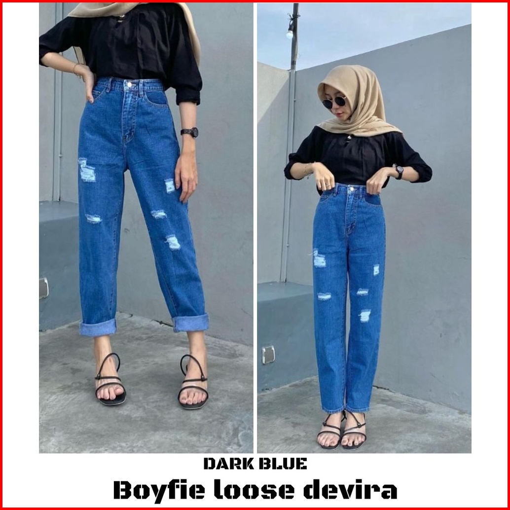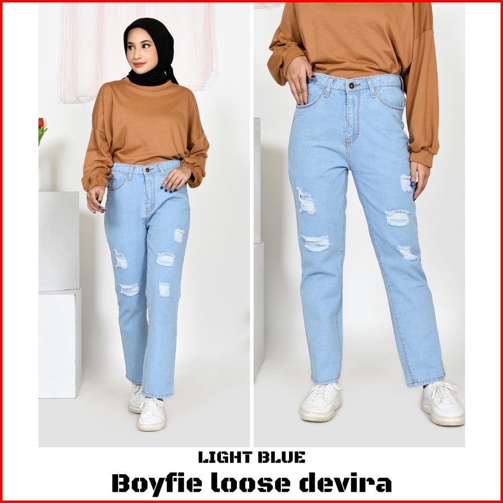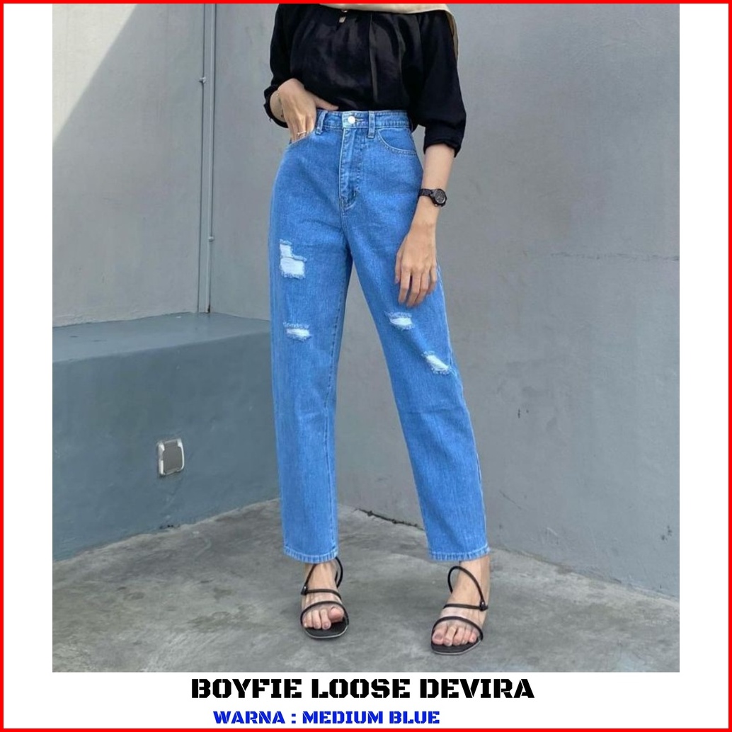 Yaoshi- Celana Jeans Wanita Pinggang Tinggi Devira Boyfie Loose Devira Premium Size 27-34