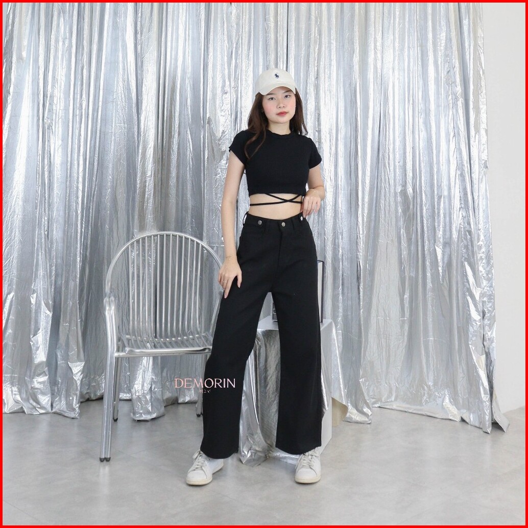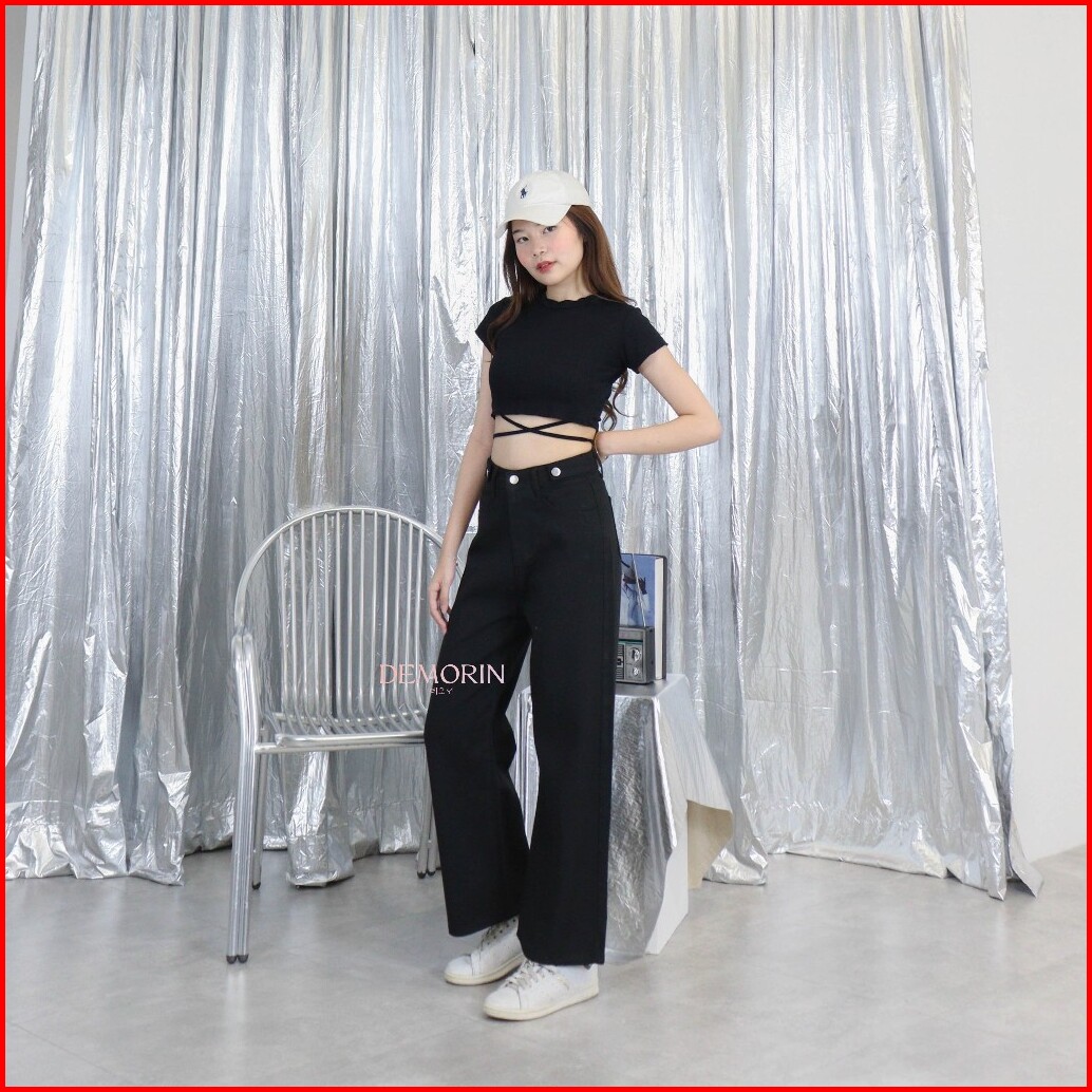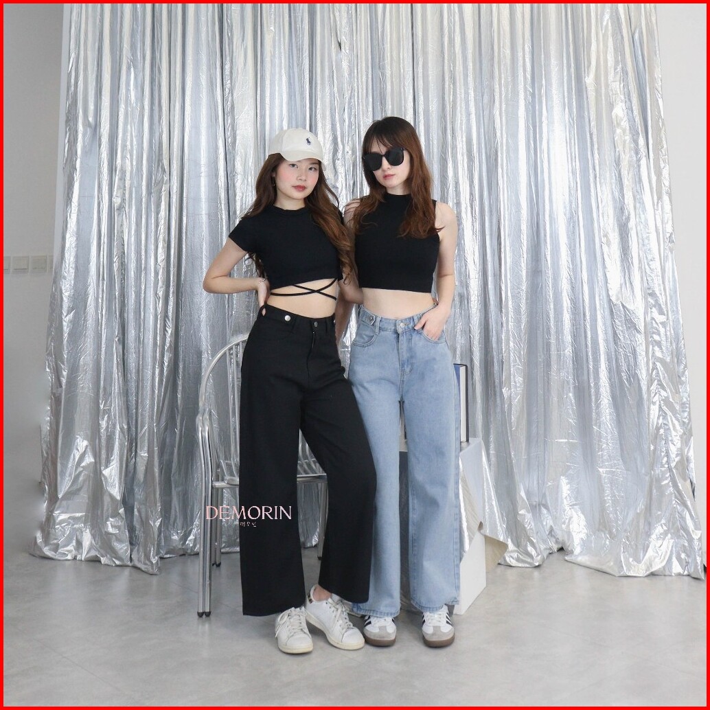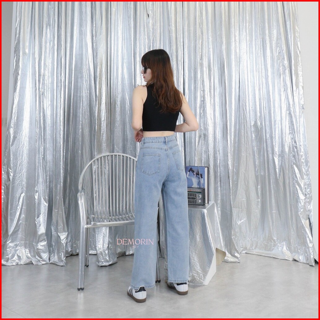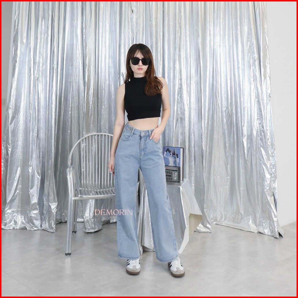 Demorin Celana Panjang Jeans Kulot Panjang Wanita Loose Fit High Waist Cewek Bahan Denim Korean X38