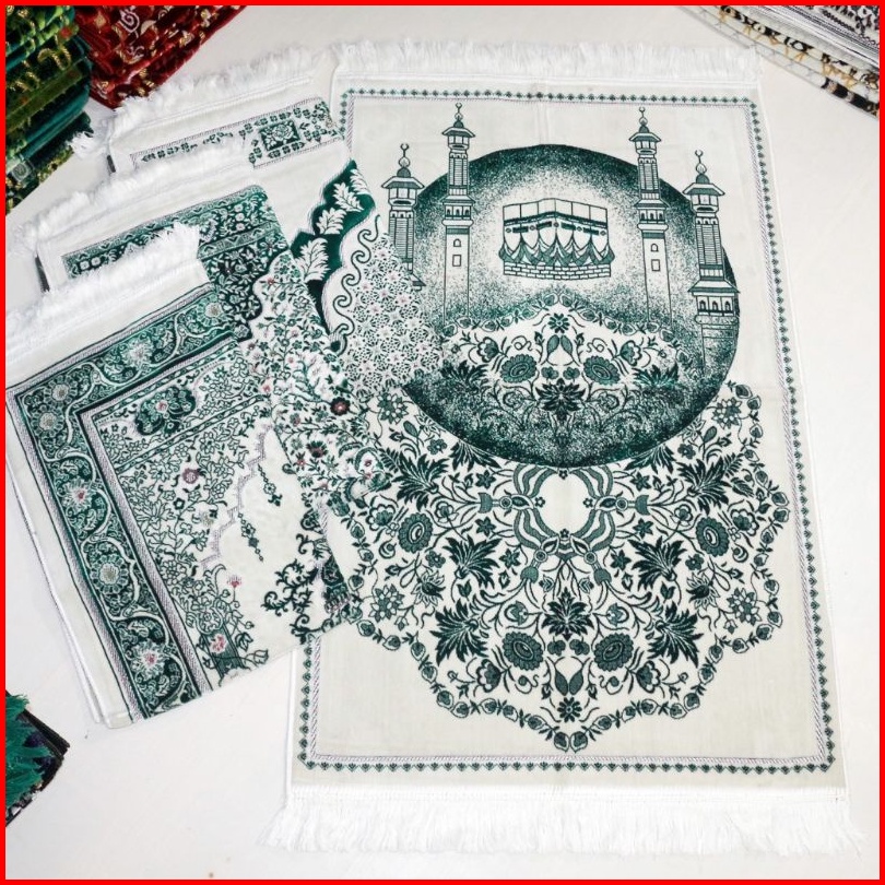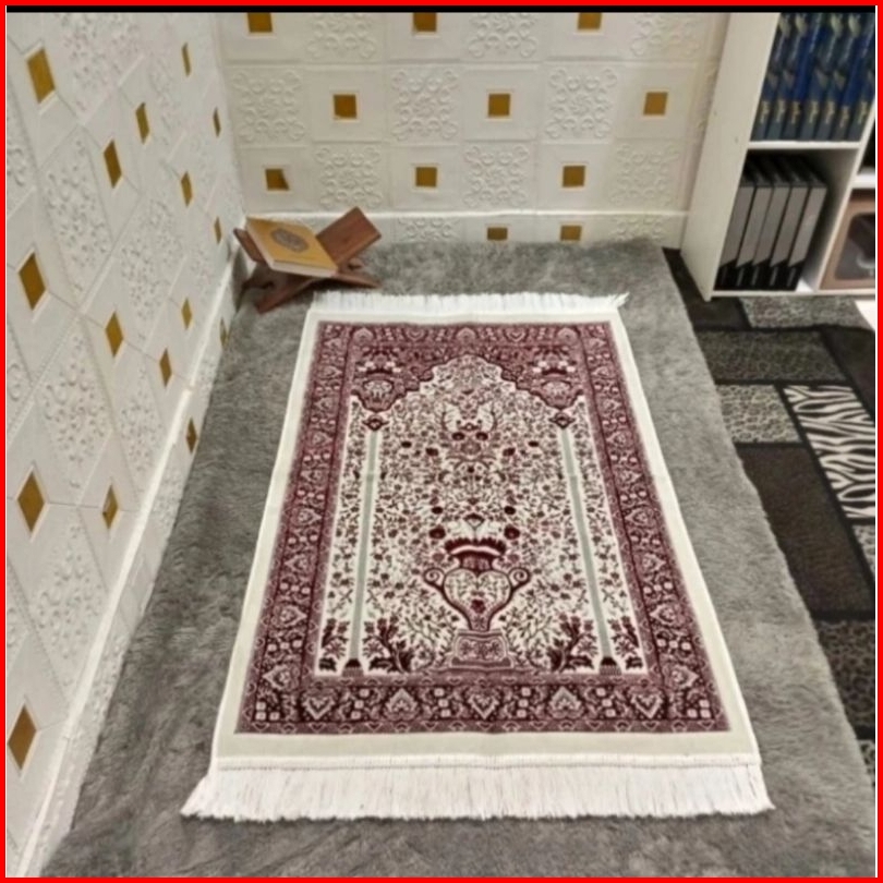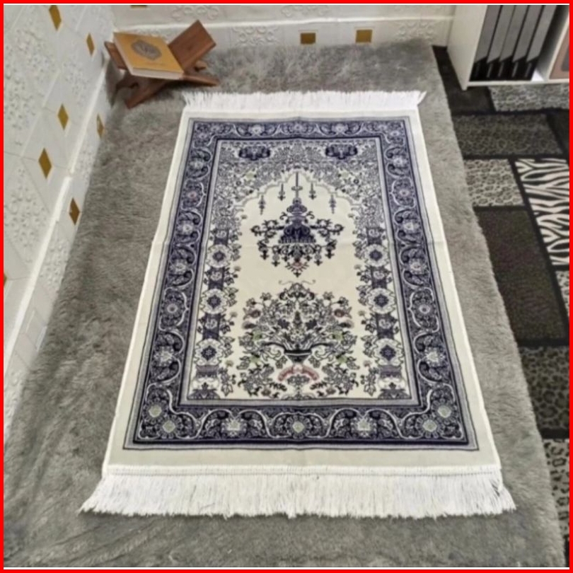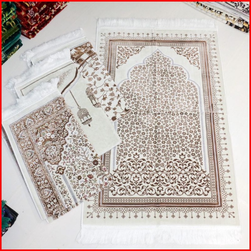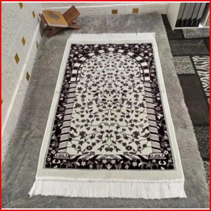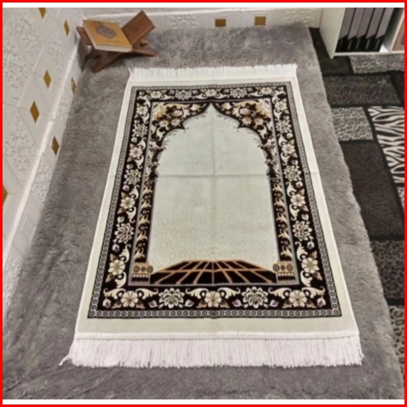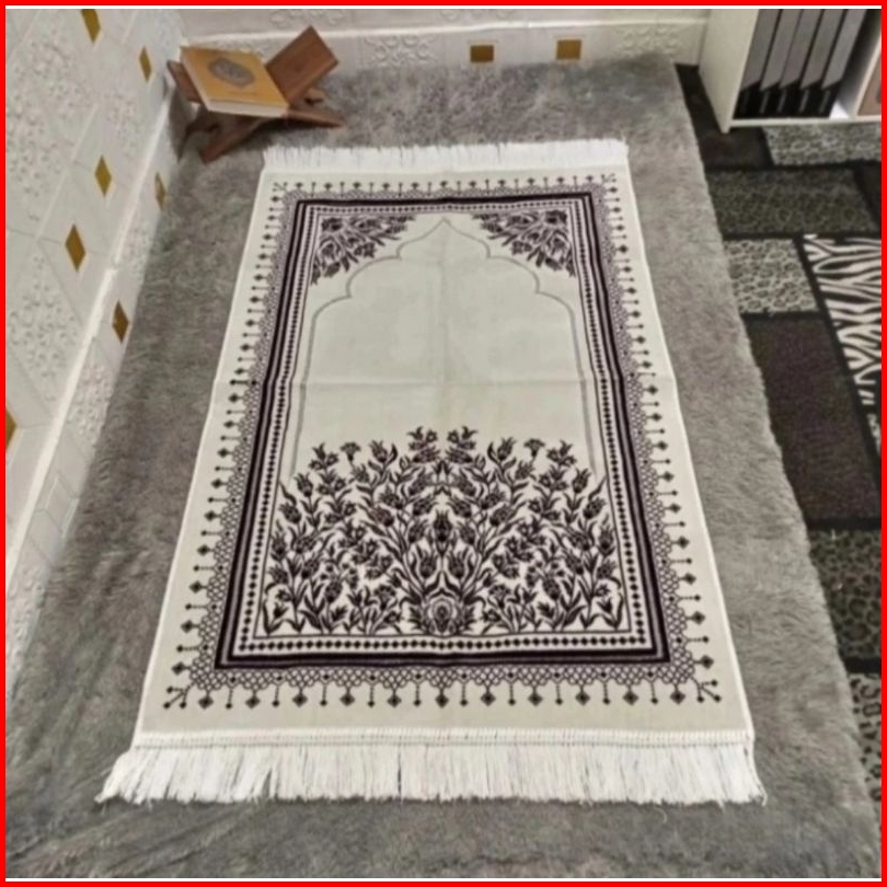 Sajadah Tebal Bludru Putih Halus Sajadah Turki Tebal