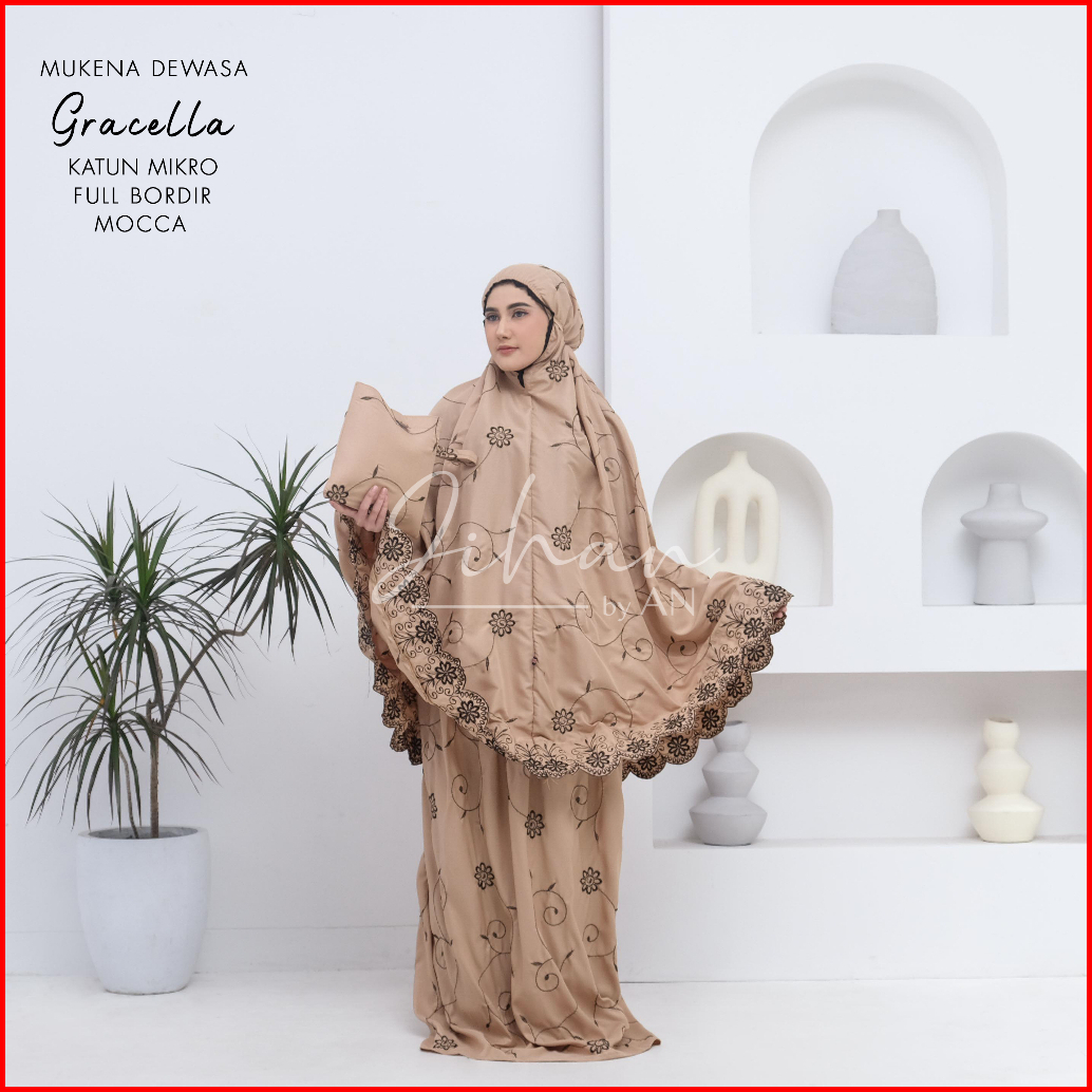 Mukena Dewasa Gracella Katun Mikro Full Bordir Jumbo