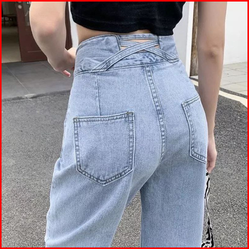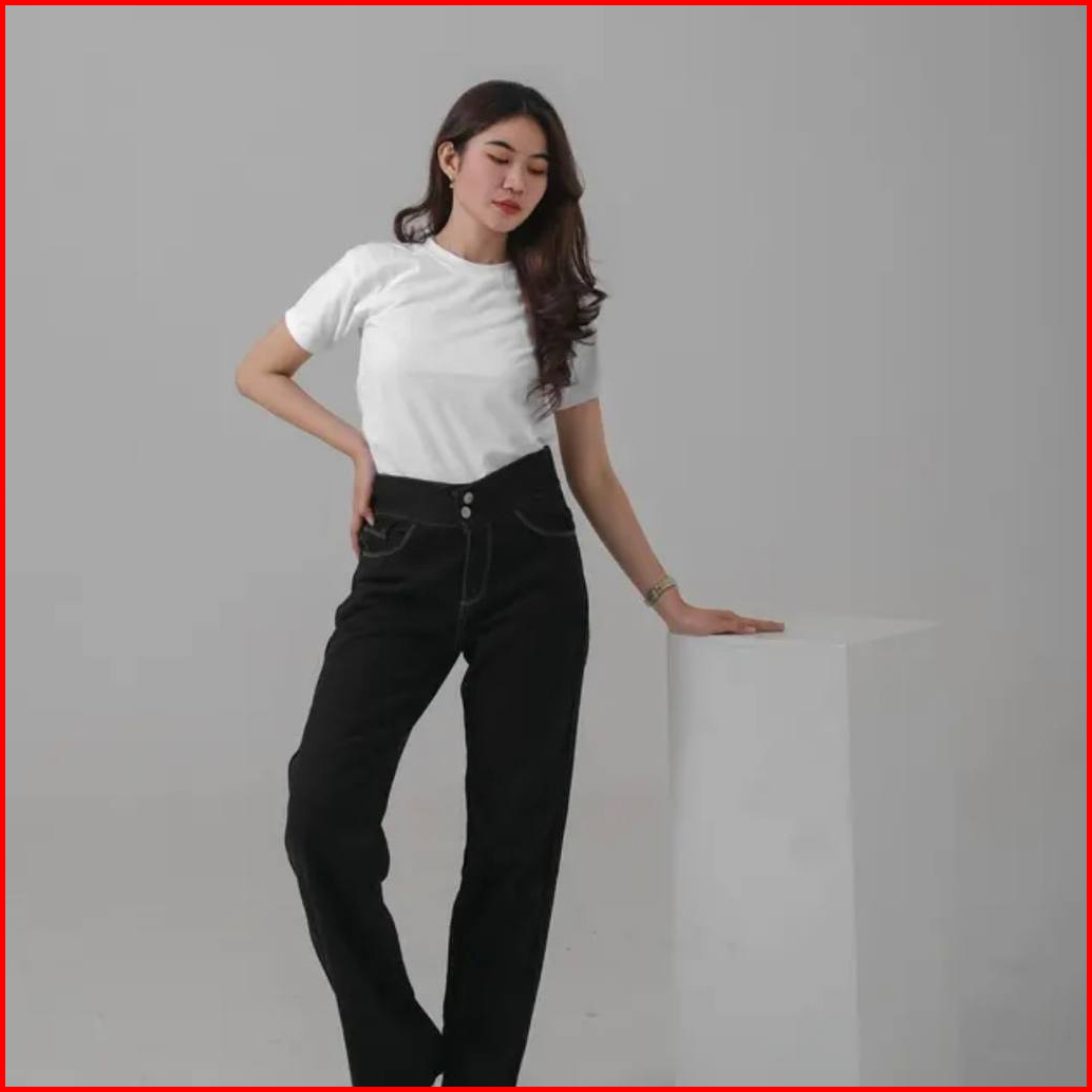 Celana Panjang Highwaist Kulot Loose Jeans Wanita J23 Double Button 2 Kancing Ligh Blue Hitam Abu - Kulot Jeans Wanita P