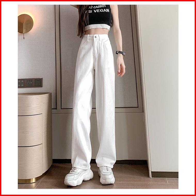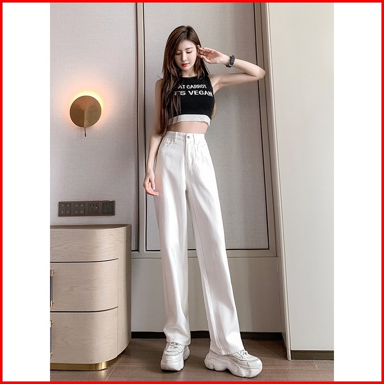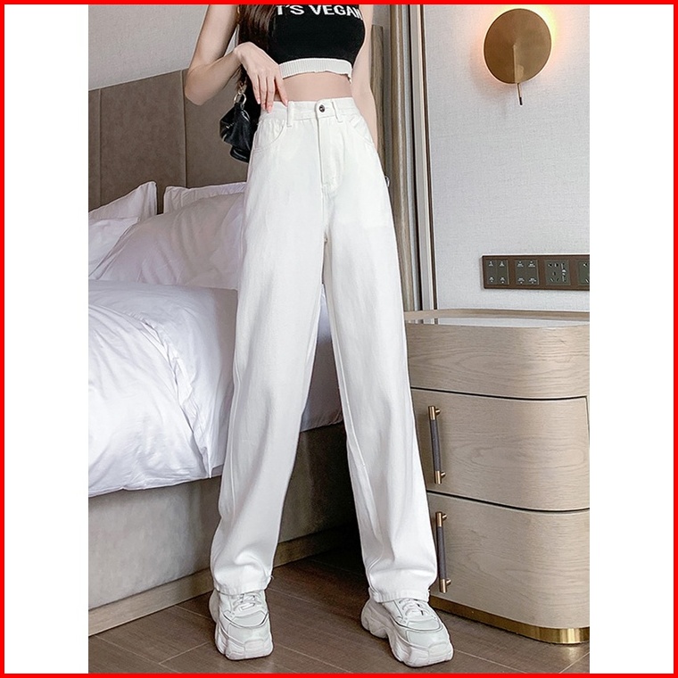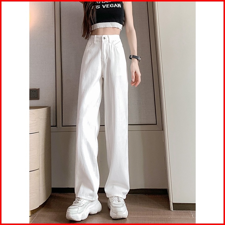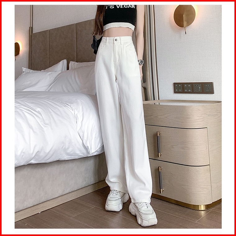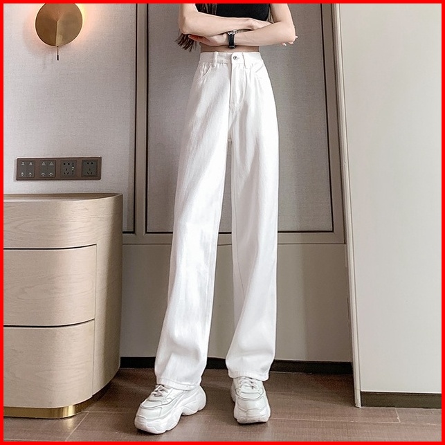 Denim Celana Wide-leg Perempuan High-waist Longgar Lurus-kaki Celana Panjang