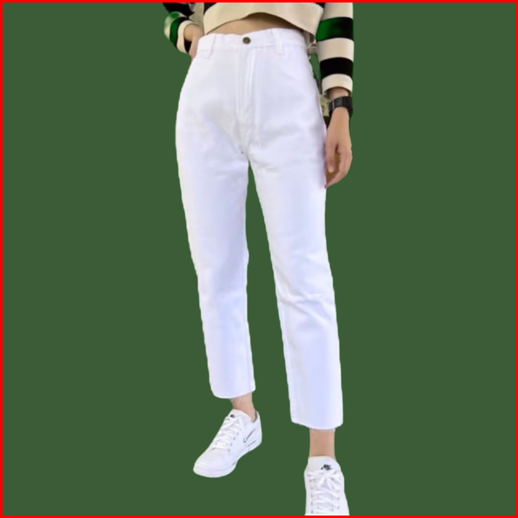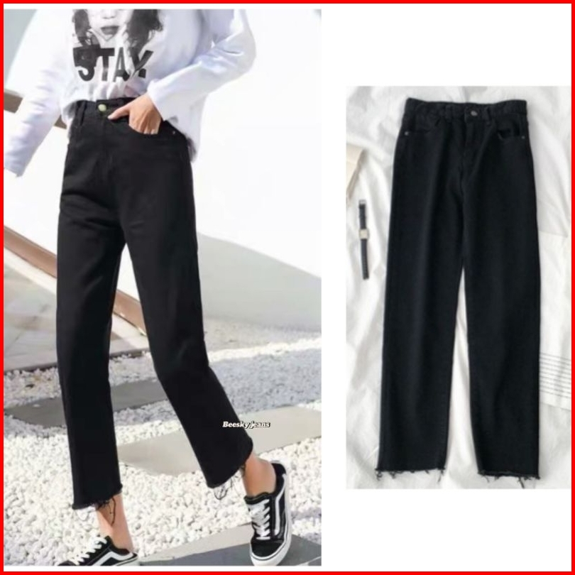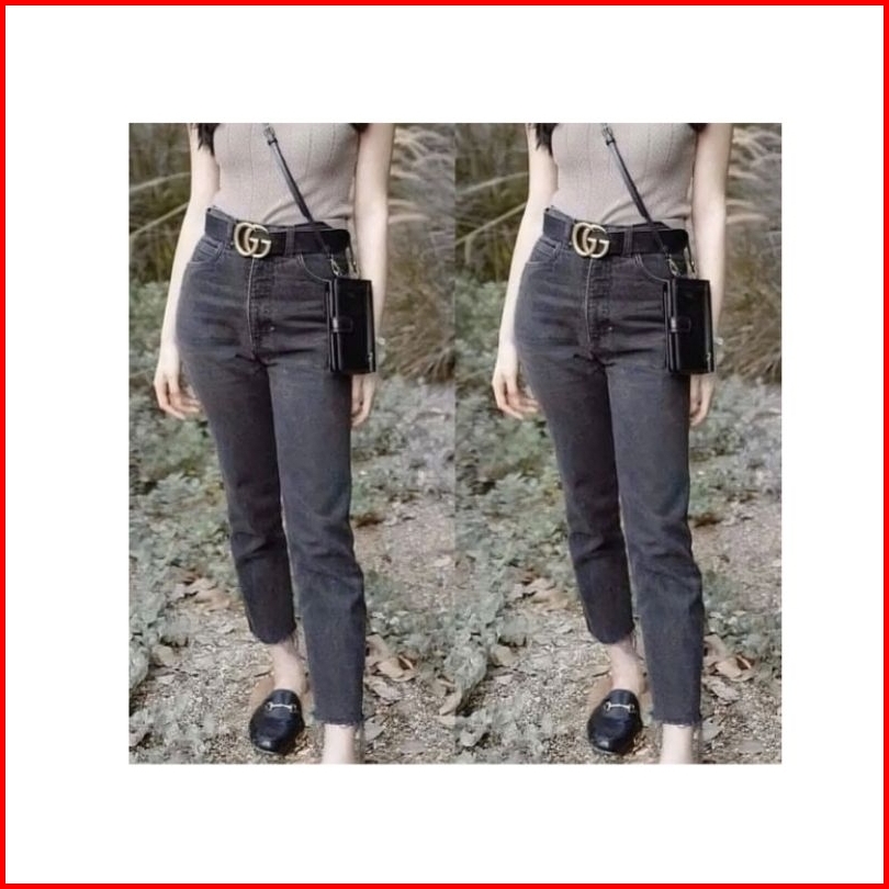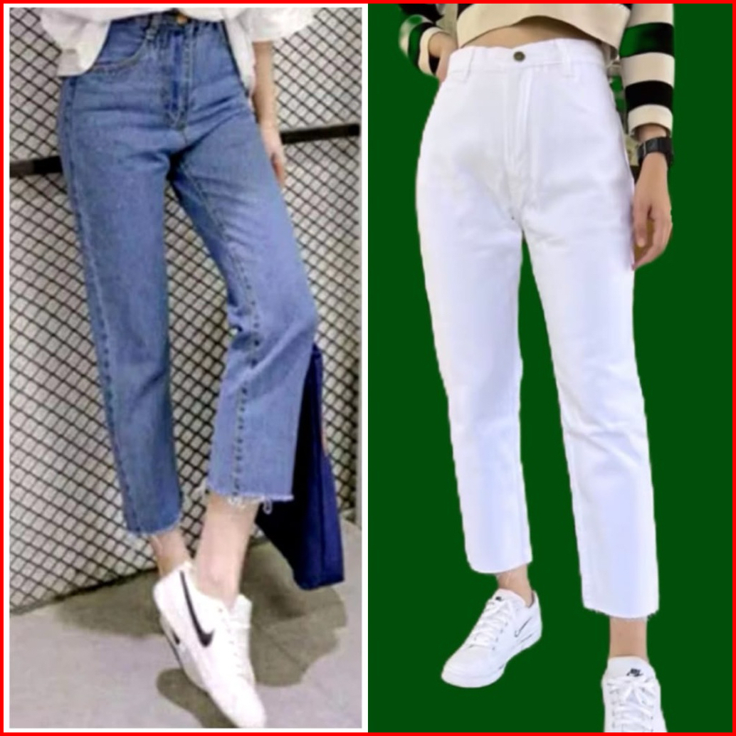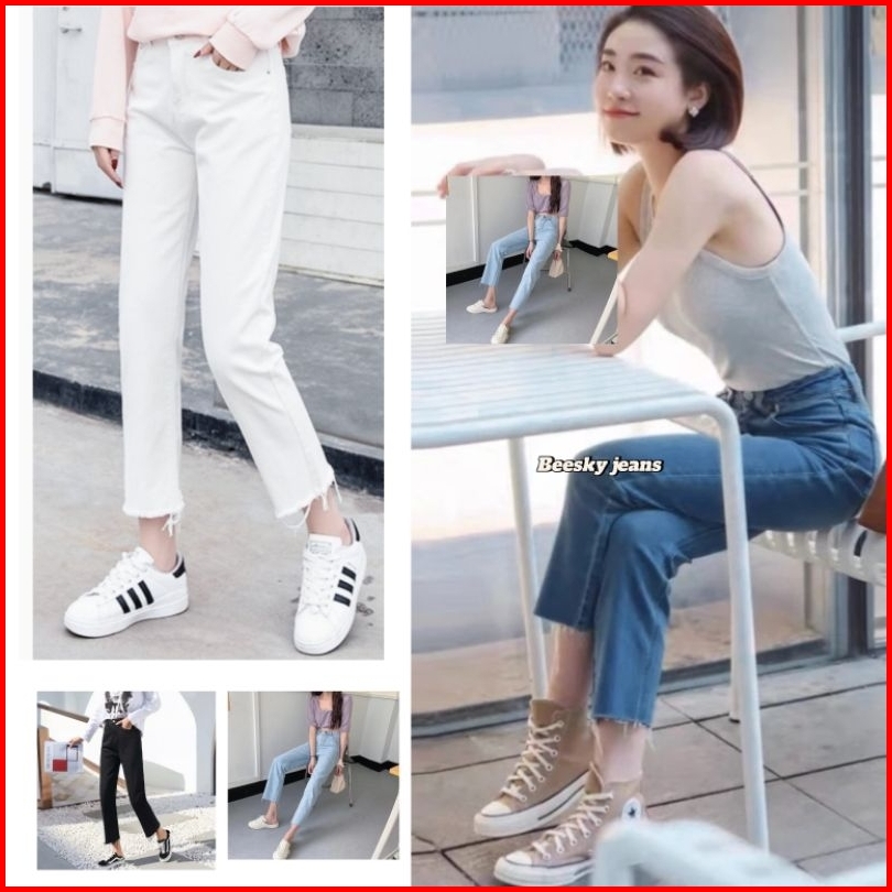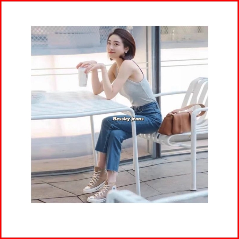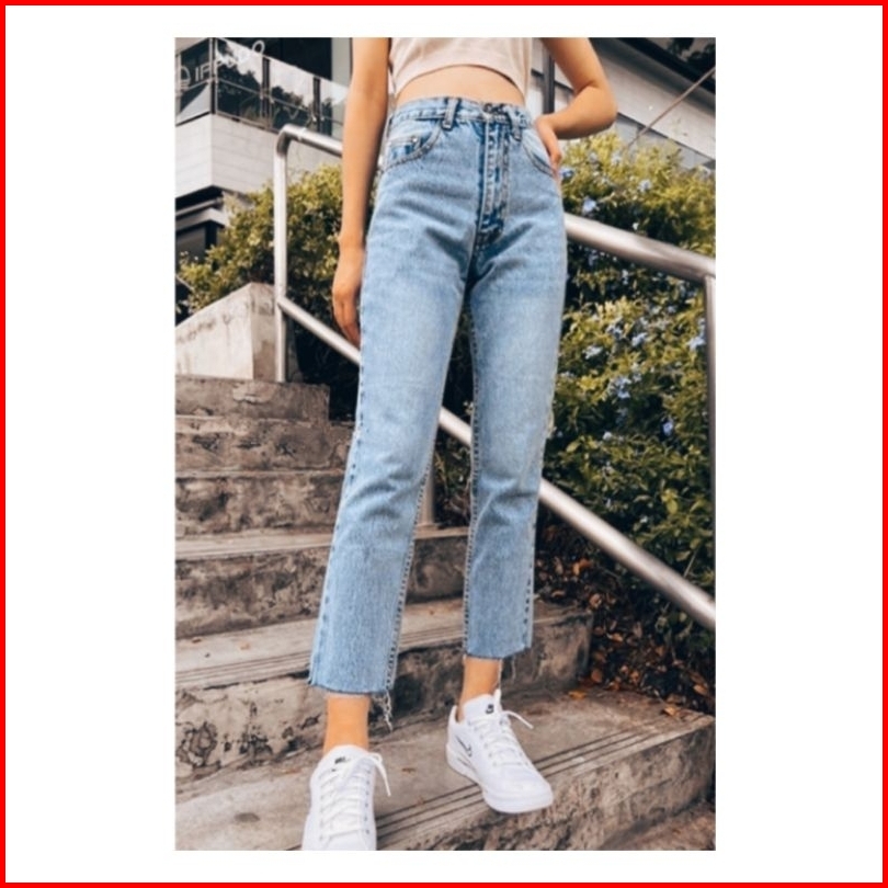 Unfinished Jeans Korean Style Celana Jeans Wanita -non Straight Jeans - High Jeans - Celana Jeans Panjang Wanita Celana