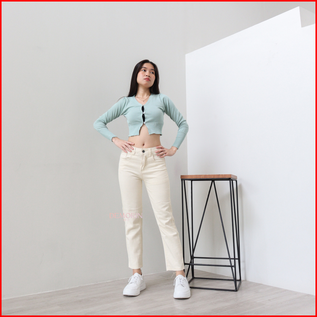 Demorin Celana Jeans Panjang Skinny Jeans Non Stretch Midwaist Wanita Kekinian X3233
