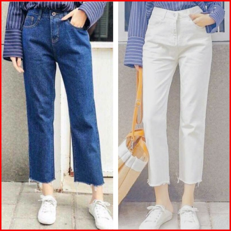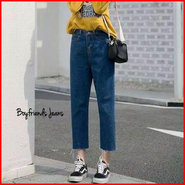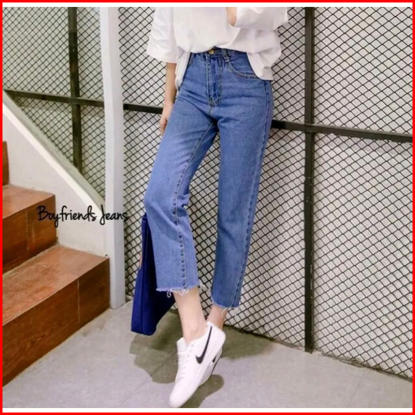 Awsme - Bf Hw Unfinished Non Stretch Jeans Wanita Non One Slice Hipster Cut Knee Kekinian
