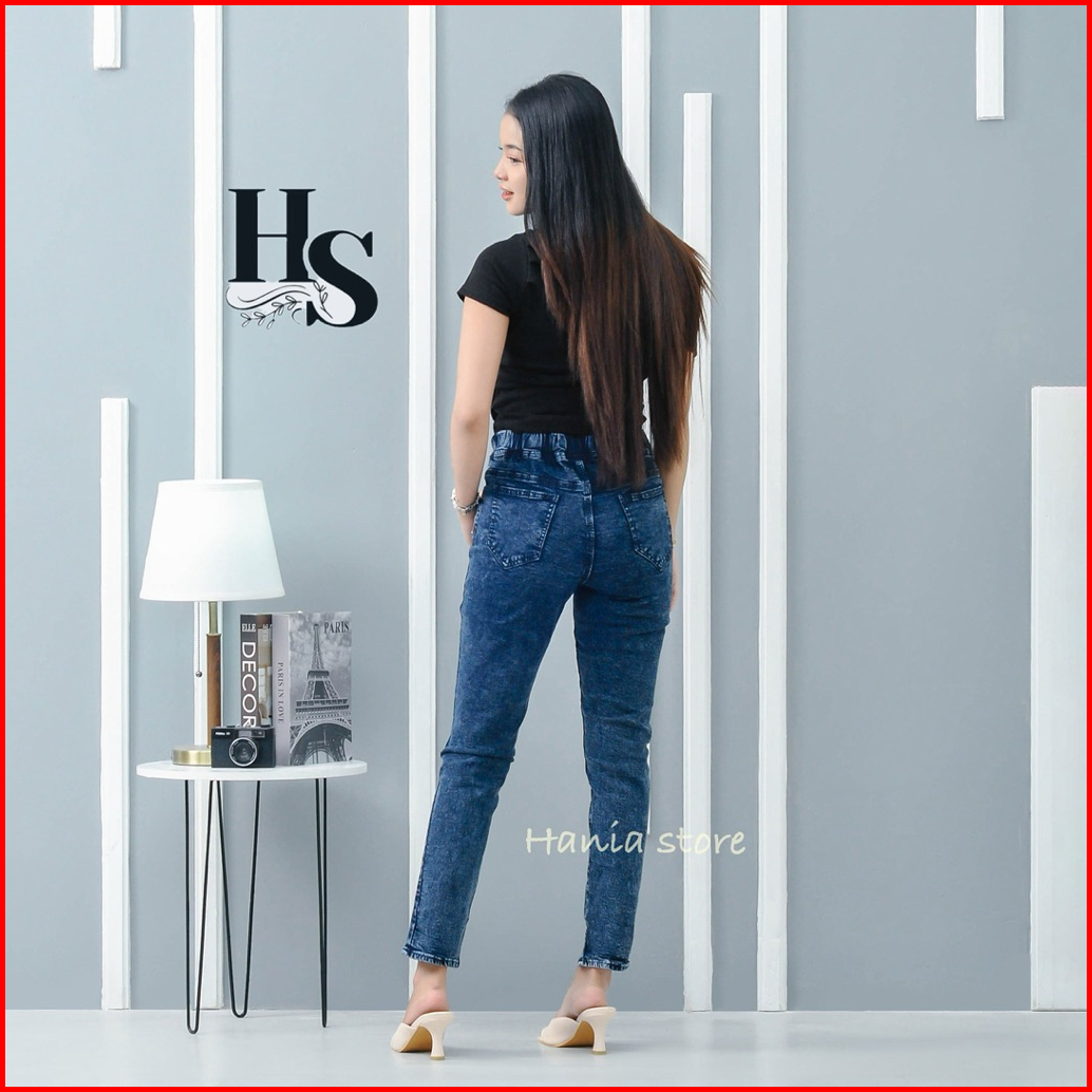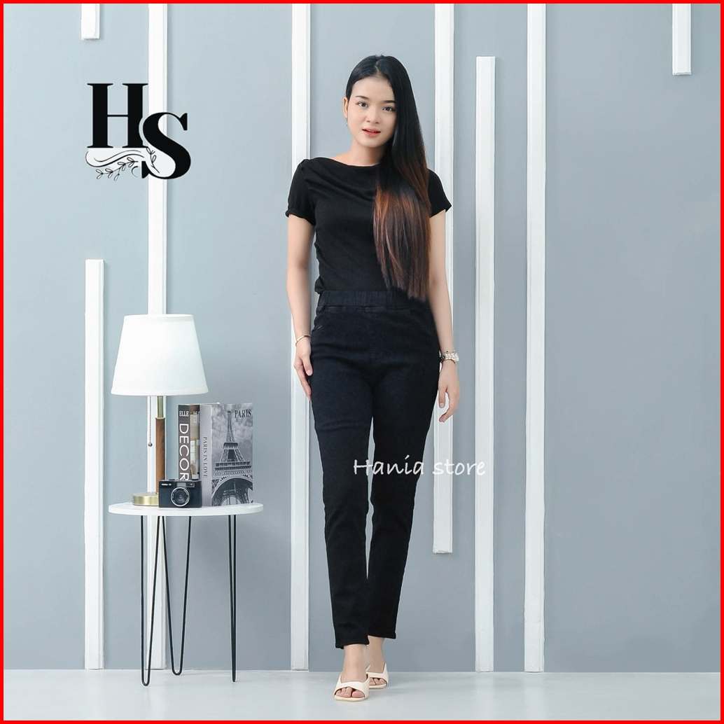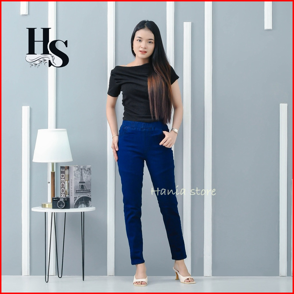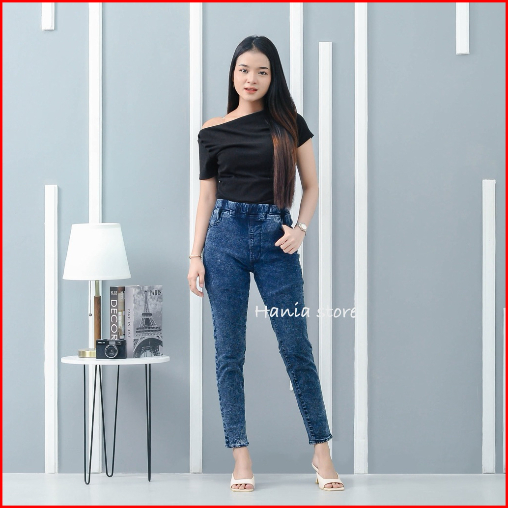 Celana Legging Wanita Jeans Pinggang Karet Super Jumbo Putih Size 27-40