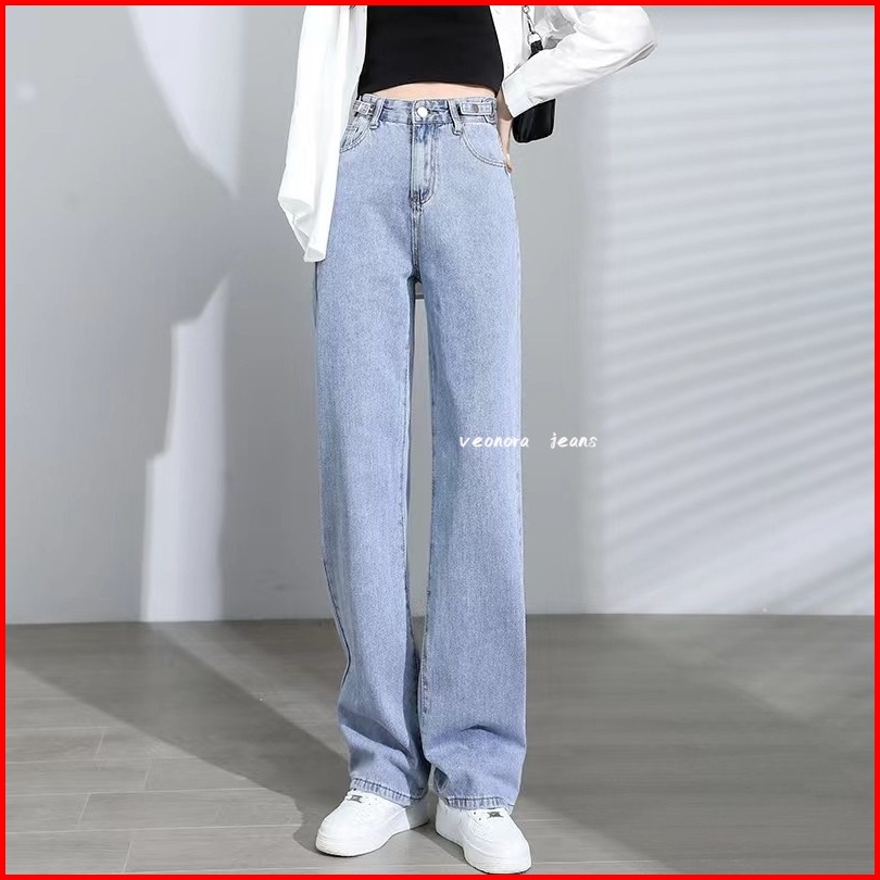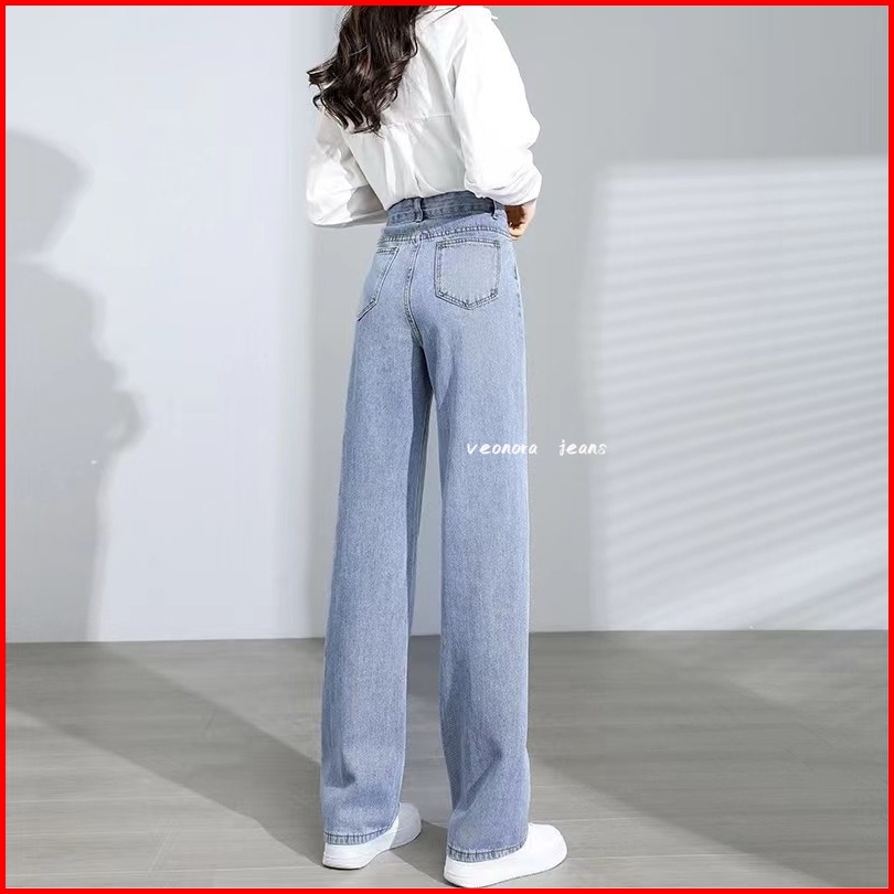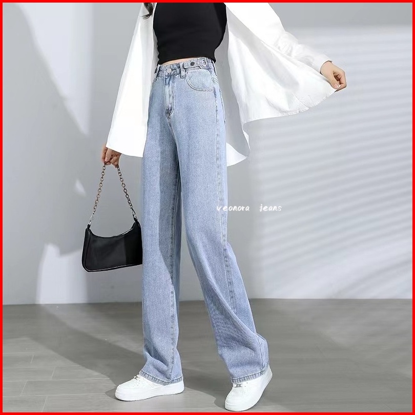 Straight Loose Highwaist Kekinian Kulot Premium Baggy Pants Bagy Boyfriend Panjang Celana Jeans Wanita Biru