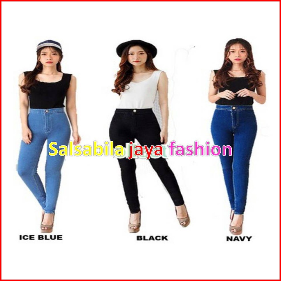Celana Jeans Wanita Highwaist Celana Jeans Skinny Plain Soft Polos Premium Ukuran 27-34