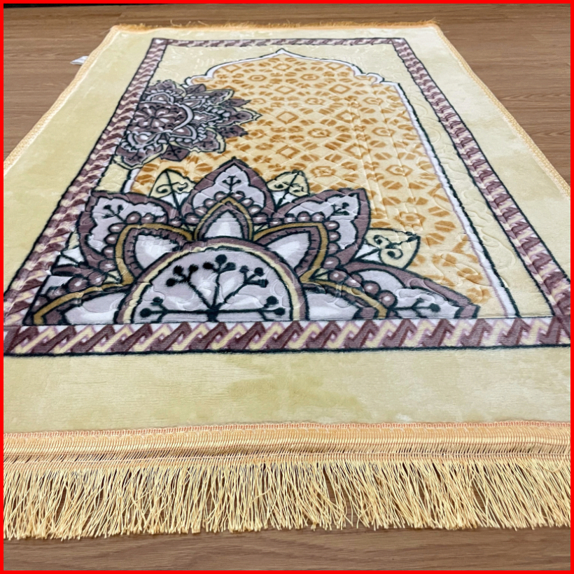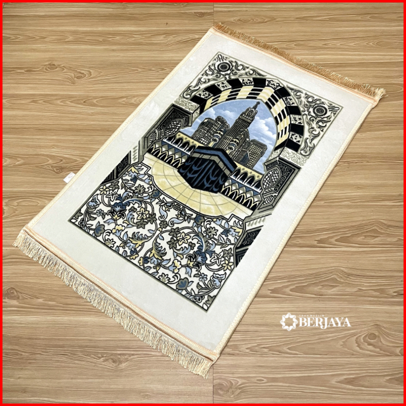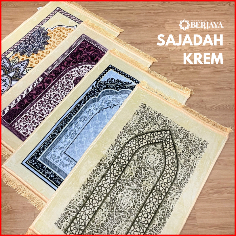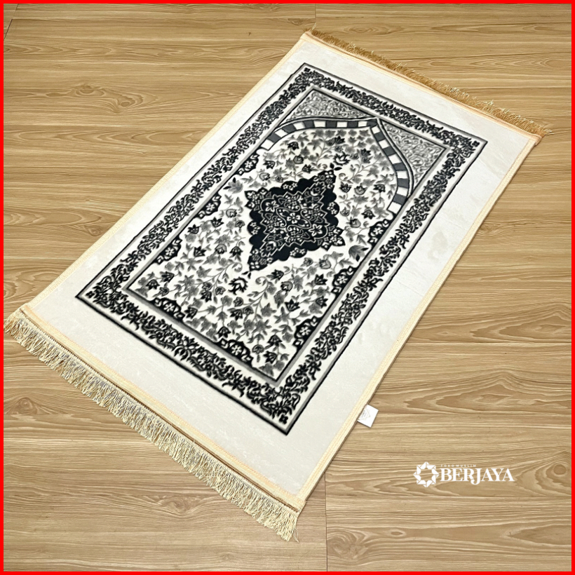 Sajadah Krem Turki Tebal Putih Cream Premium Anti Slip Gratis Kartu Ucapan