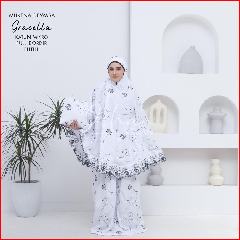 Asera - Mukena Dewasa Gracela Full Bordir Bunga Teratai