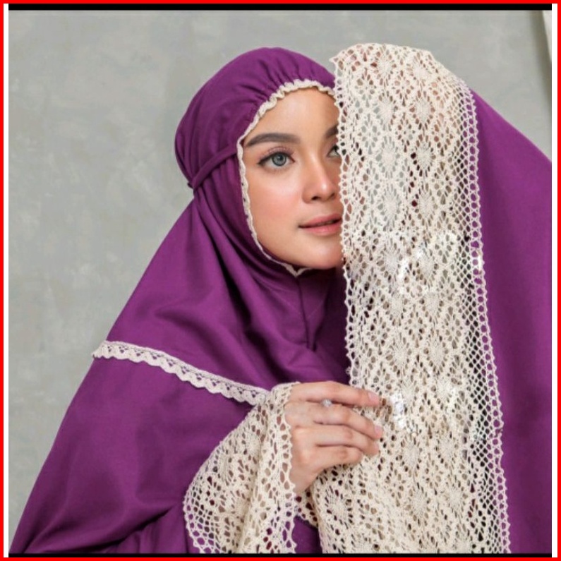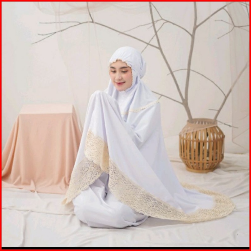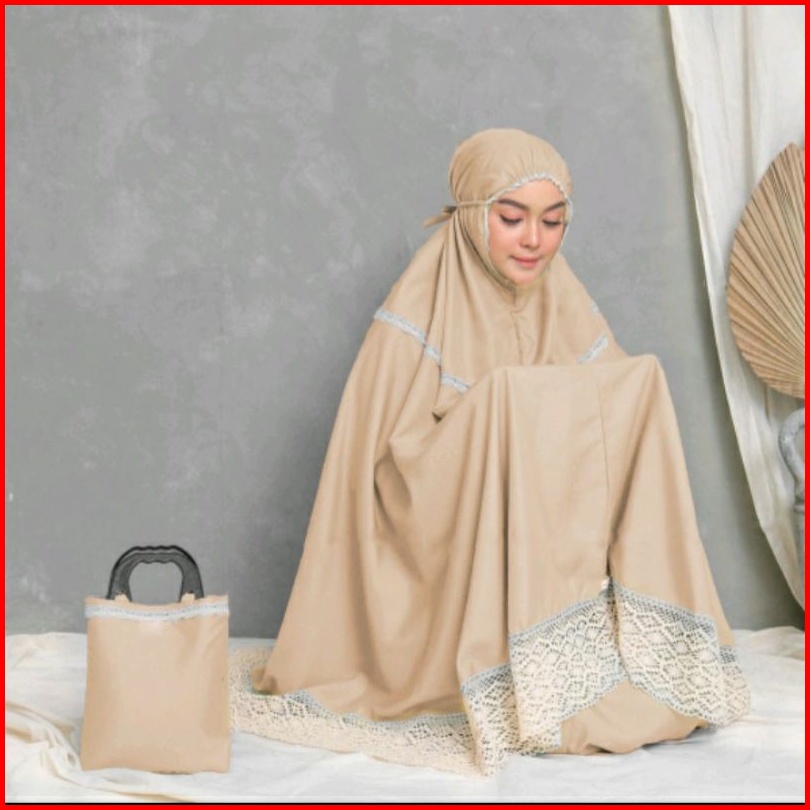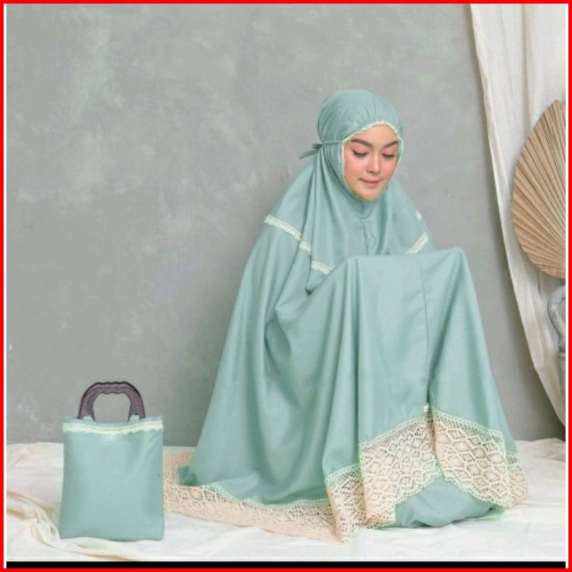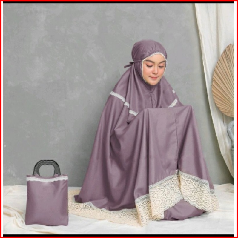 Mukena Dewasa Katun Polos Jumbo Renda Mewah Series Siti Maryam Tas Cantik Murah Free Bros