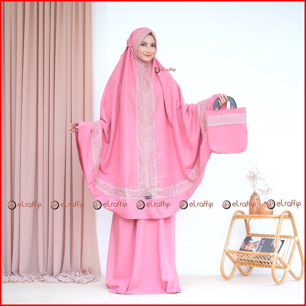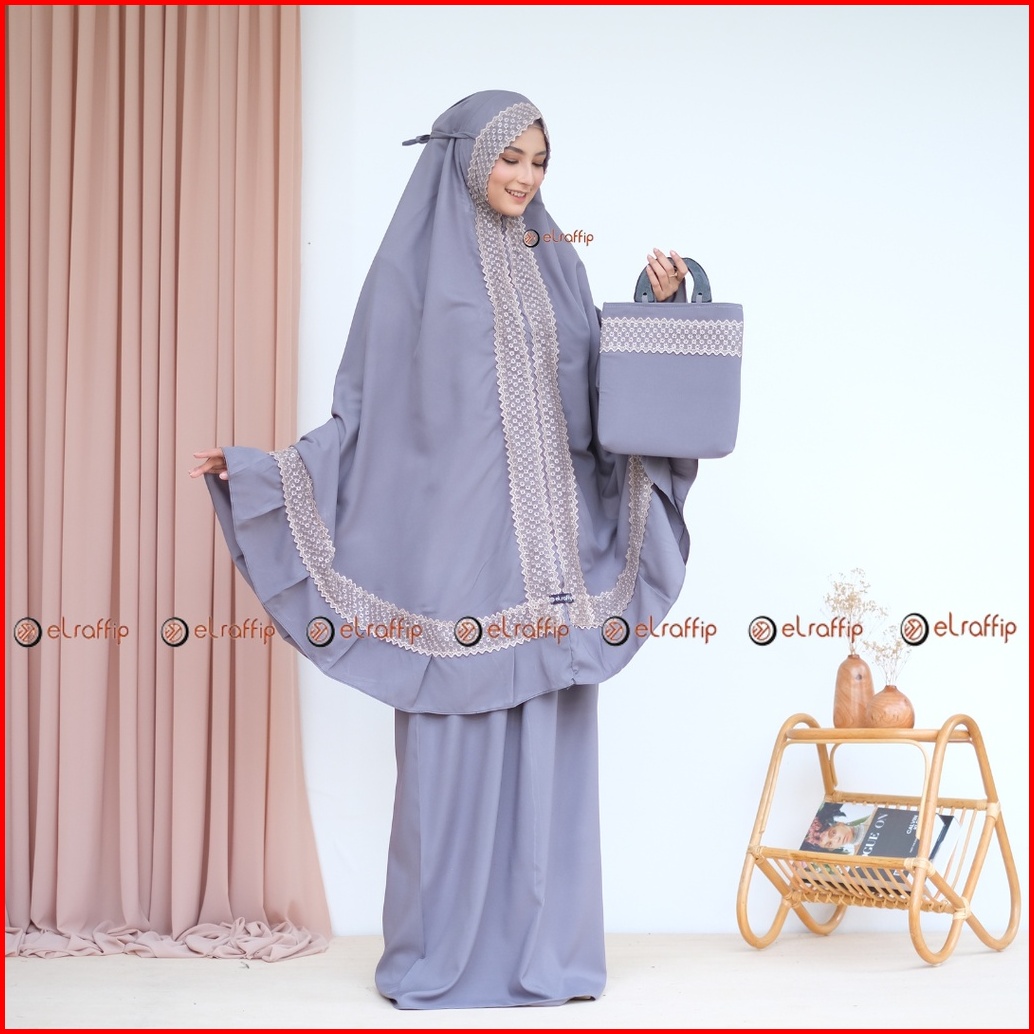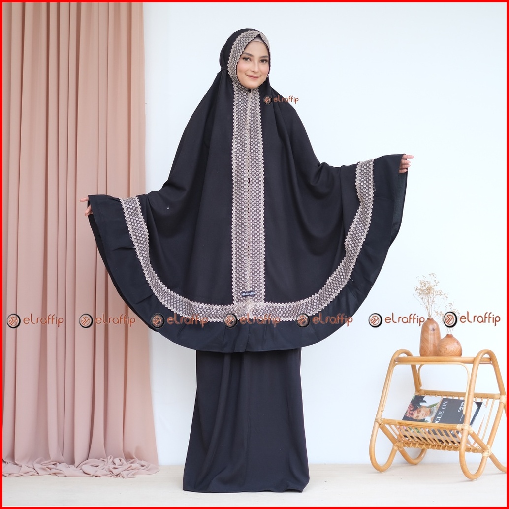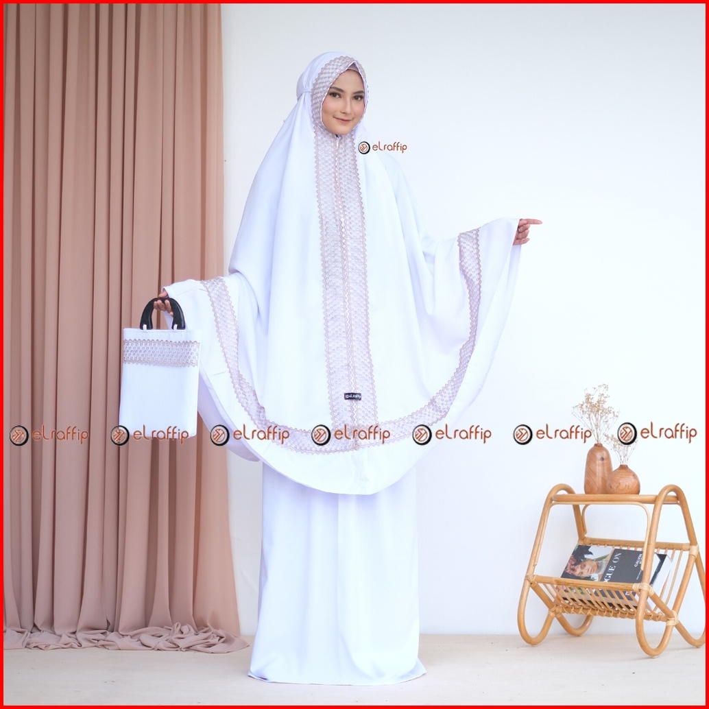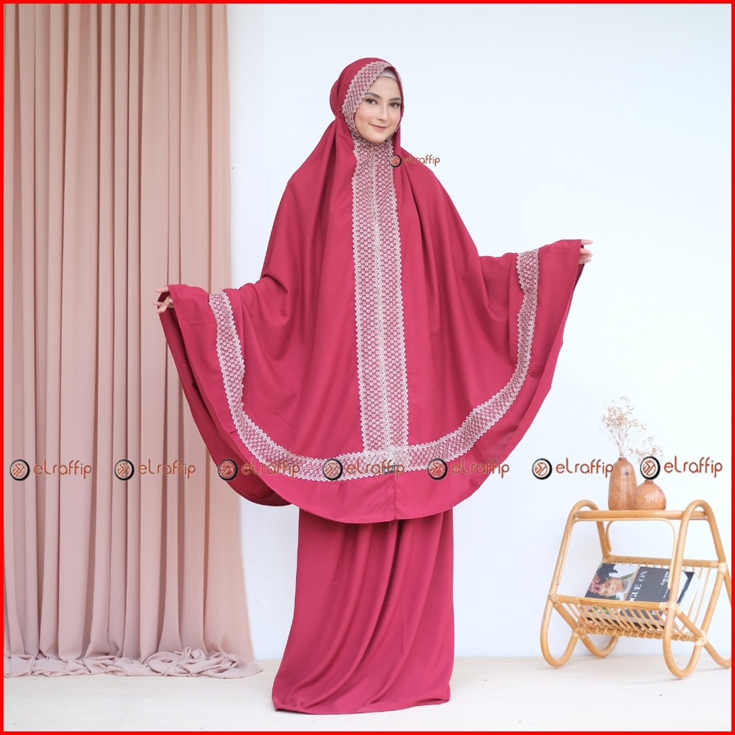Elraffip-mukena Dewasa 2in1 Katun Polos Kombinasi Renda Bordir Tile Dan Bahan Serut