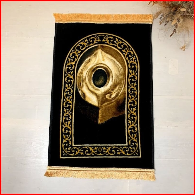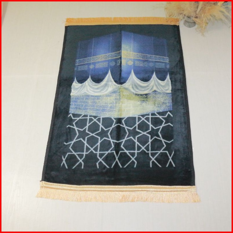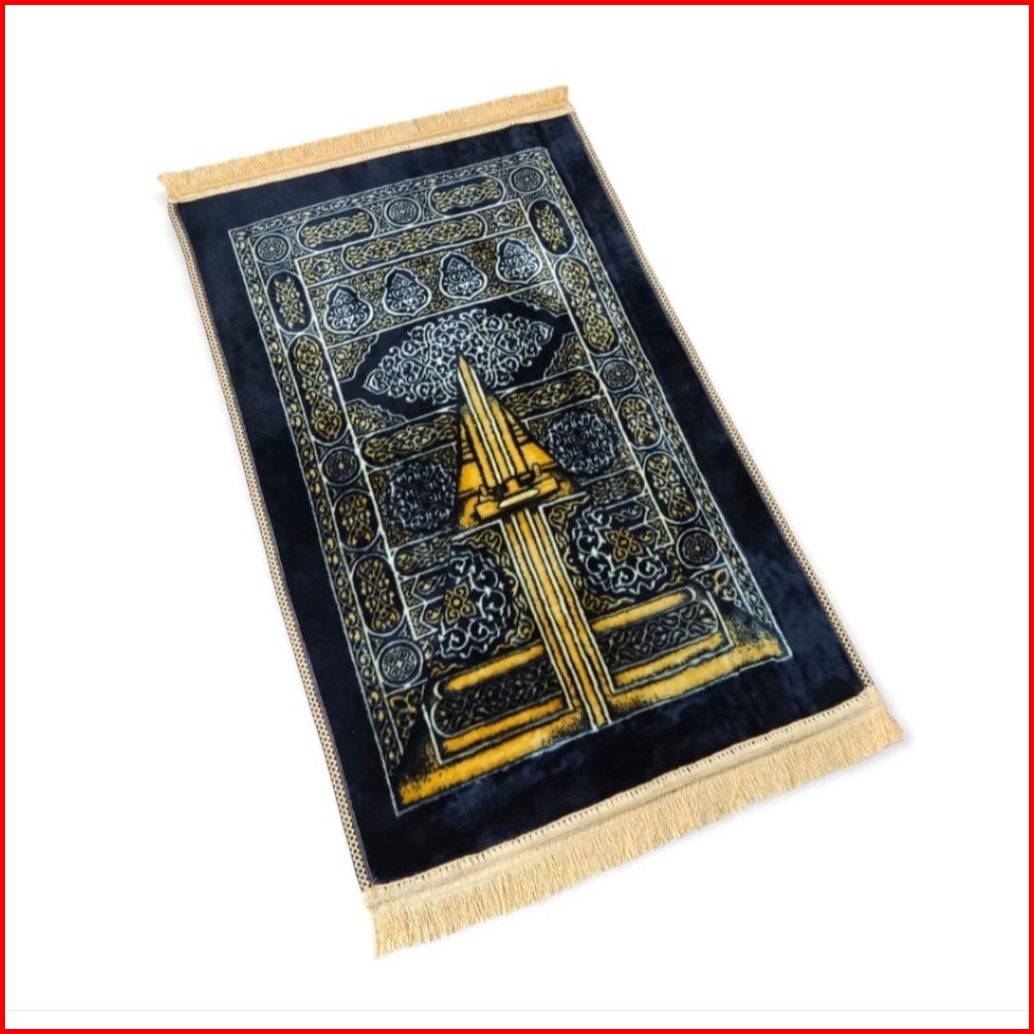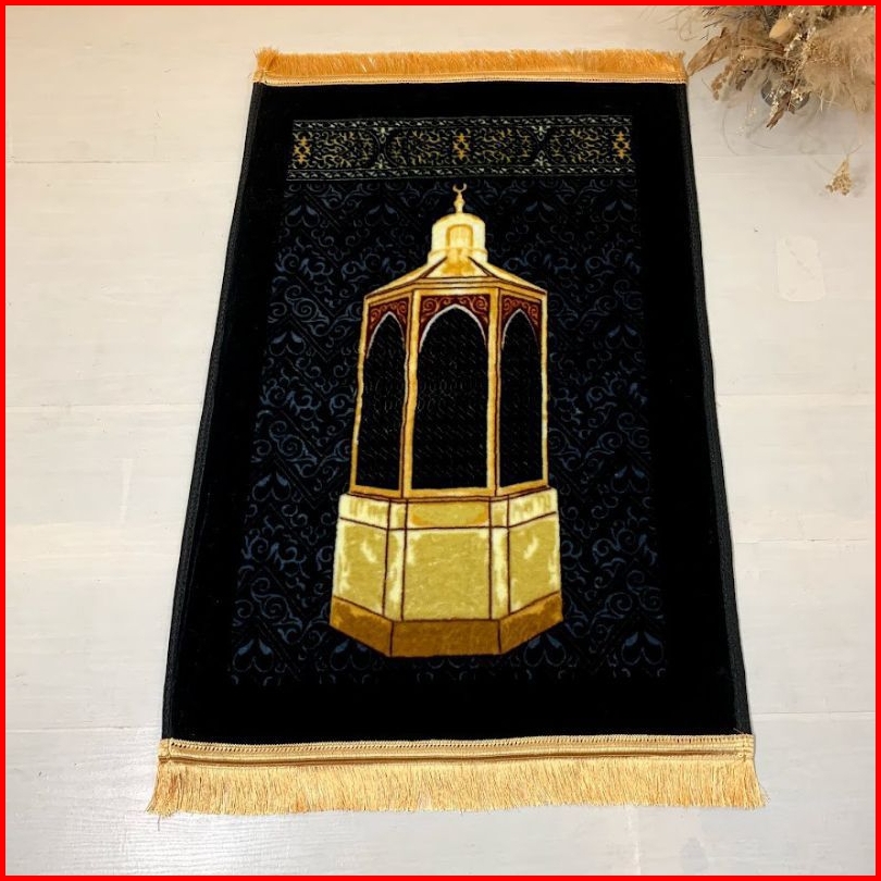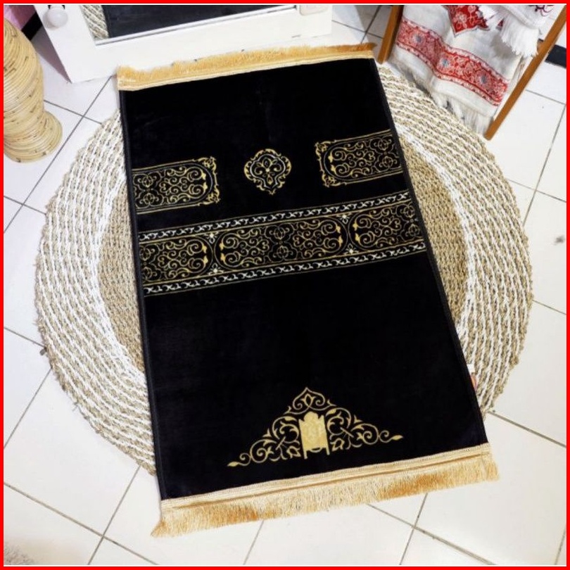 Sajadah Besar Busa Anti Slip Tebal Motif Hitam Kiswah Rumbai