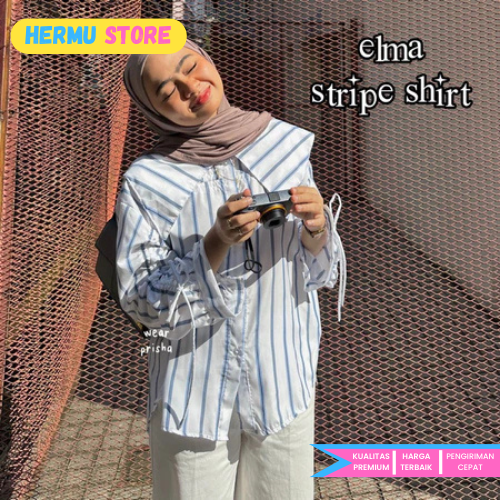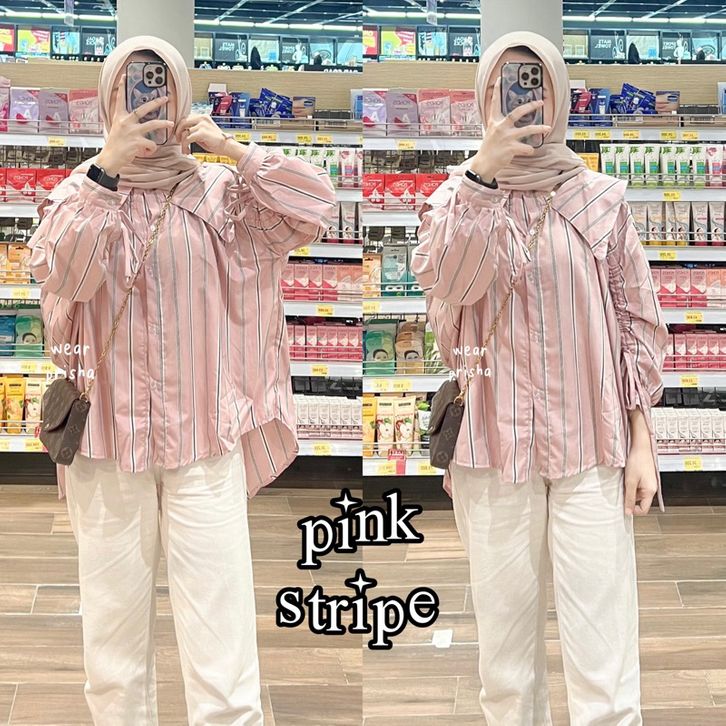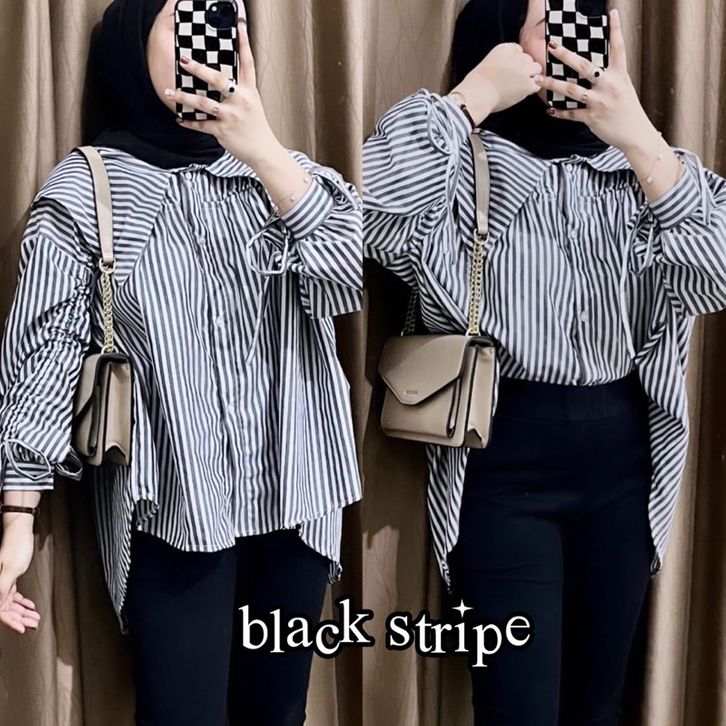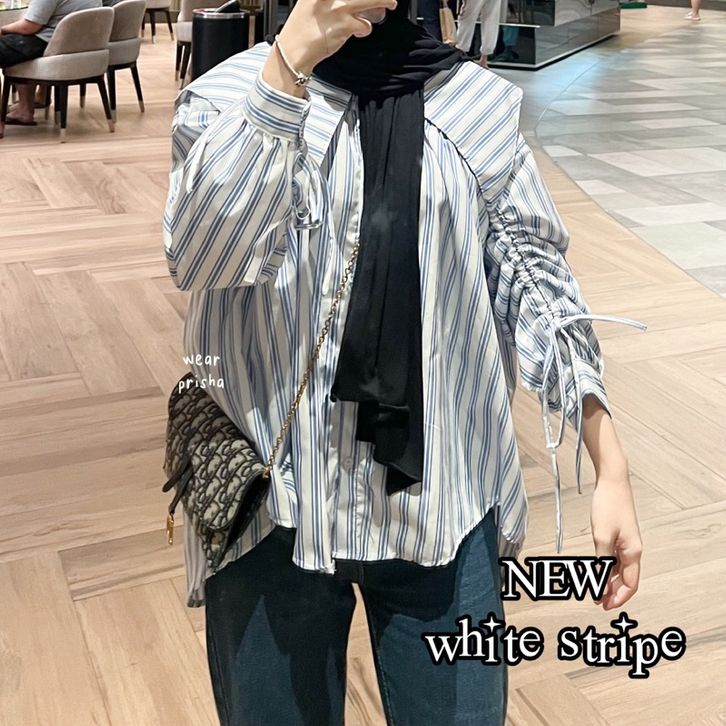 KEMEJA WANITA BAJU ATASAN CEWE BLOUSE OVERSIZED STRIPE SHIRT KEMEJA WANITA FORMAL PREMIUM MOTIF GARIS JUMBO BIG SIZE