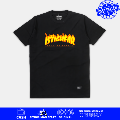 Kaos Kata Kata Istighfar Flame Baju Dakwah Muslim Islami Cotton Combed 24s Unisex kaos kata kata keren kaos distro Pria