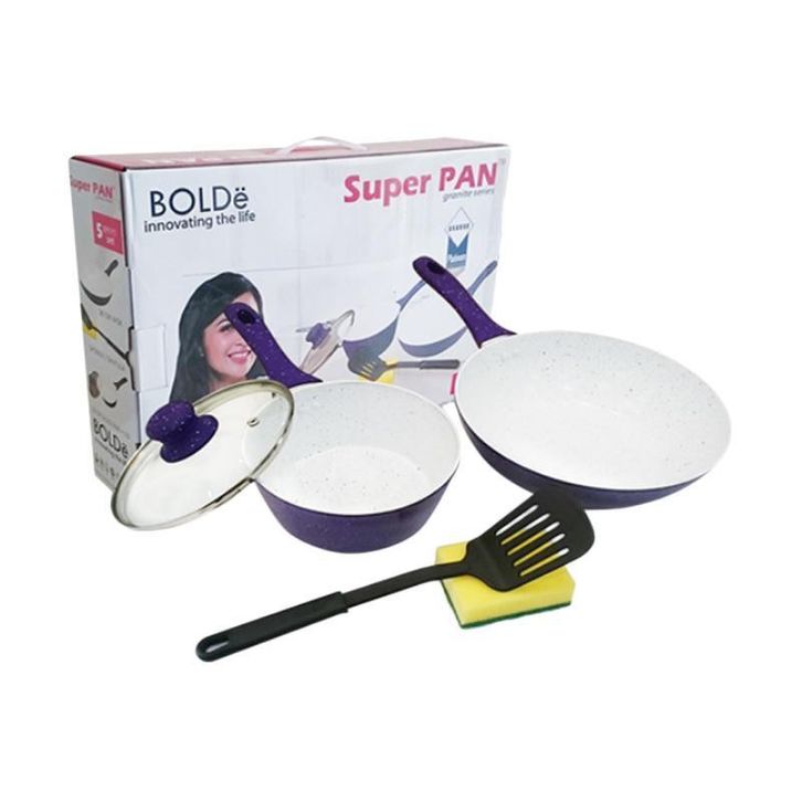 Wajan Set Anti Lengket Bolde 5 Pcs Super Pan Set Granite Purple Original Official Store