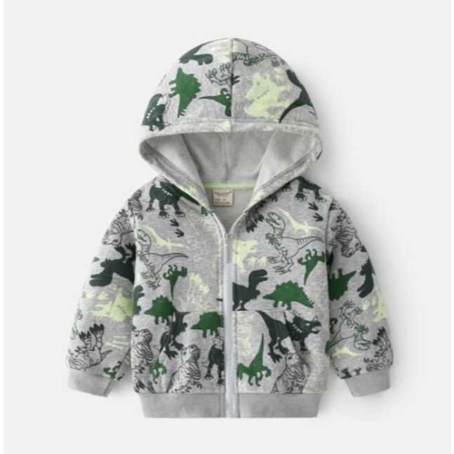[Star] JAKET HOODIE ANAK USIA 1-6TH CASUAL KARAKTER HEWAN PURBA FULL PRINTING