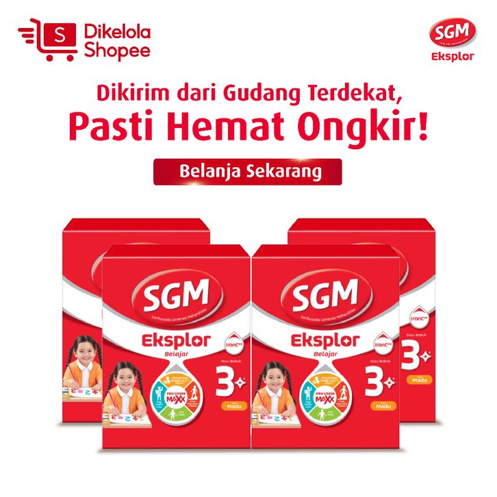 Susu SGM Eksplor 3+ Rasa Madu 600GR x 4 Dengan IronC Susu Bubuk Pertumbuhan Anak Usia 3-5 Tahun Susu Formula 3 Plus Baru