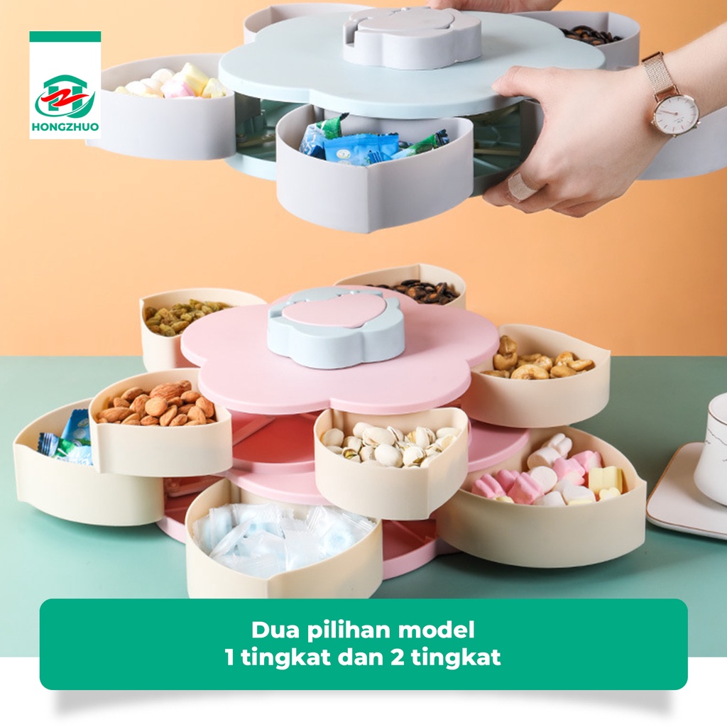 HONGZHUO TOPLES BUNGA MEKAR TOPLES PUTAR KUE/CANDY/SNACK/BUAH TINGKAT 2 SUSUN