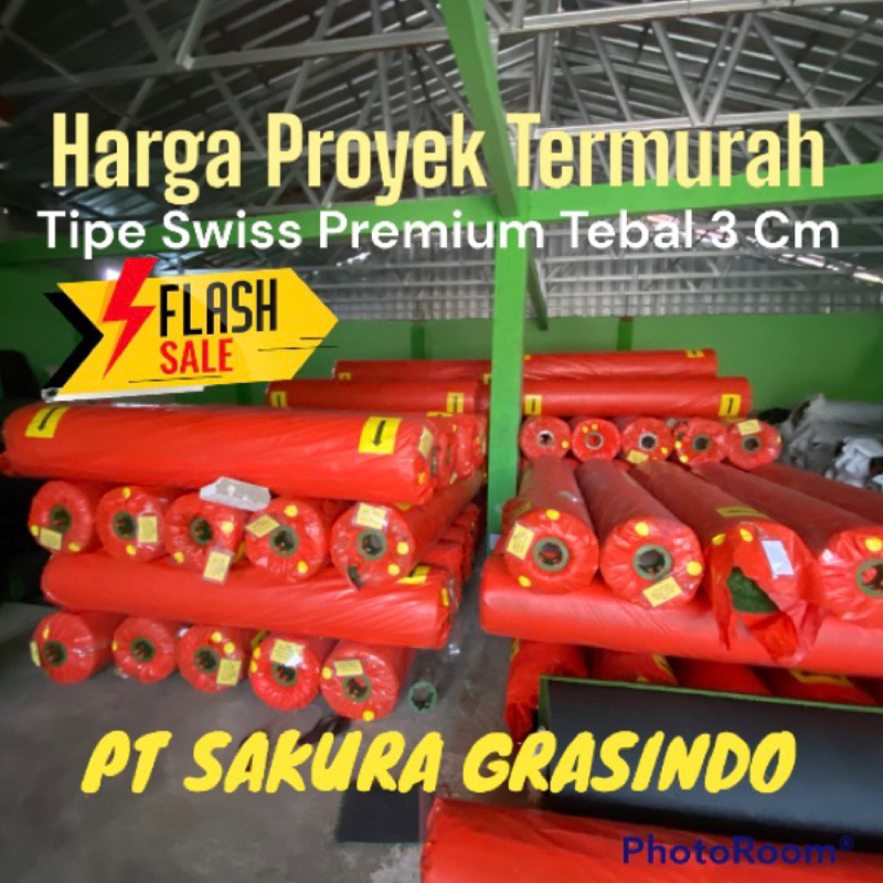 PABRIK RUMPUT SINTETIS 1 ROLL 2X25 M TEBAL 3 CM HARGA PROYEK TIPE SWISS