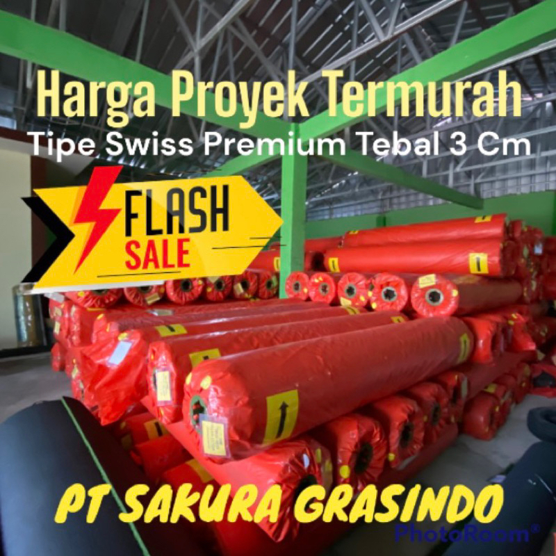 PABRIK RUMPUT SINTETIS 1 ROLL 2X25 M TEBAL 3 CM HARGA PROYEK TIPE SWISS