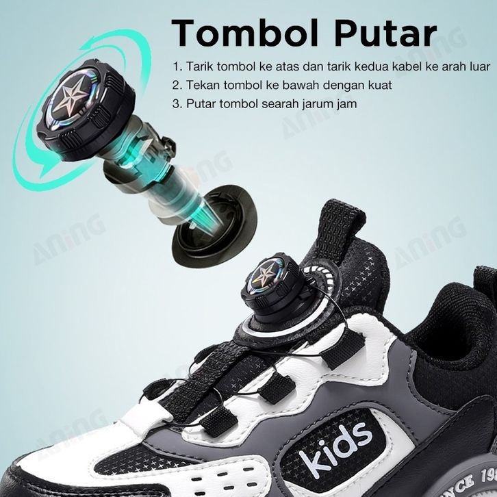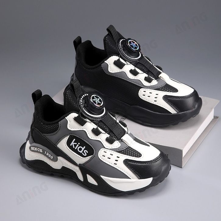 Sepatu Anak Laki-laki Gesper putar Bernapas Kasual Sepatu Olahraga sepatu kets siswa sekolah dasar dan menengah