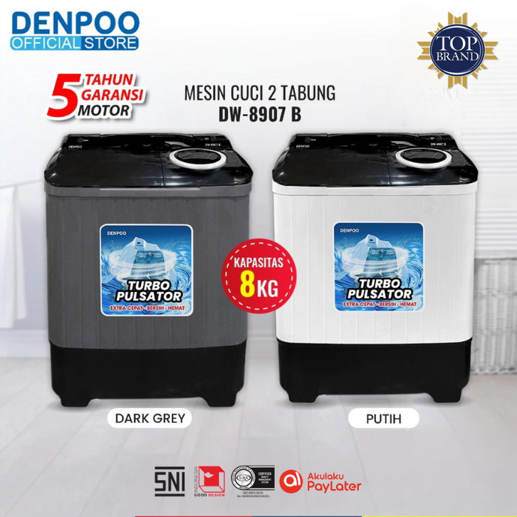 MESIN CUCI 2 TABUNG DENPOO DW 8907B 4P 8 KG