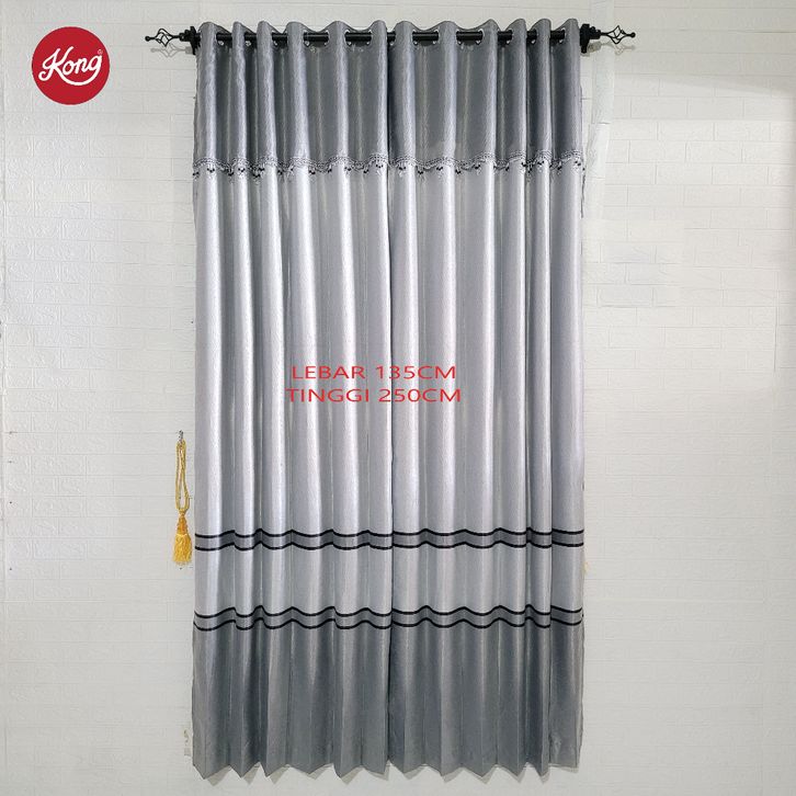 1 PCS GORDEN BLACKOUT PELANGI GARIS ABU MINIMALIS DAN TEBAL CPY LEBAR 100 X TINGGI 250 PONI TEMPEL GORDENG JENDELA