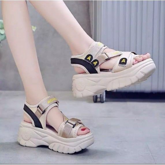 Sandal Wanita Wedges Tinggi Roma Korean Sol Tebal Model Velcro Kasual 6321 K19 Sandal OOTD