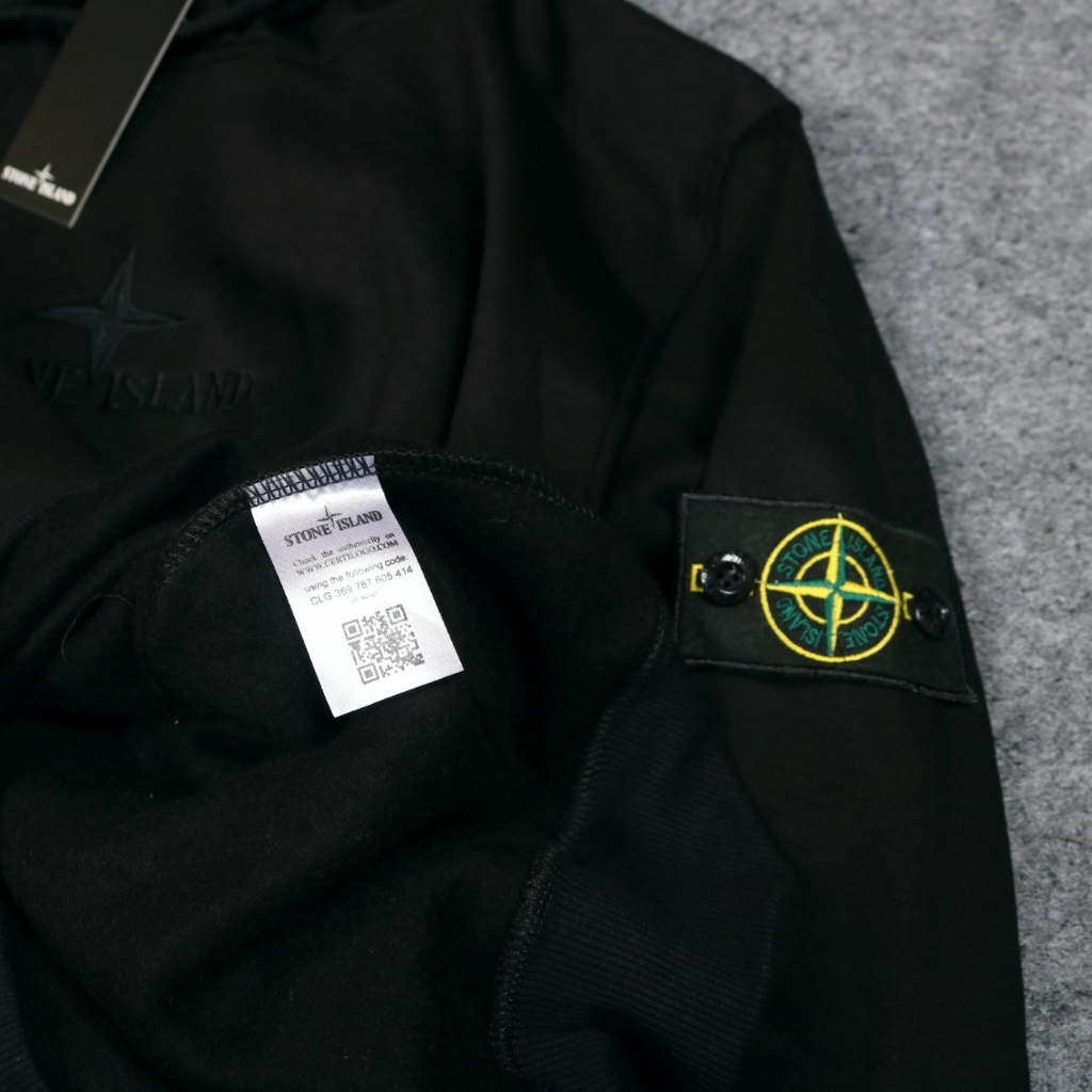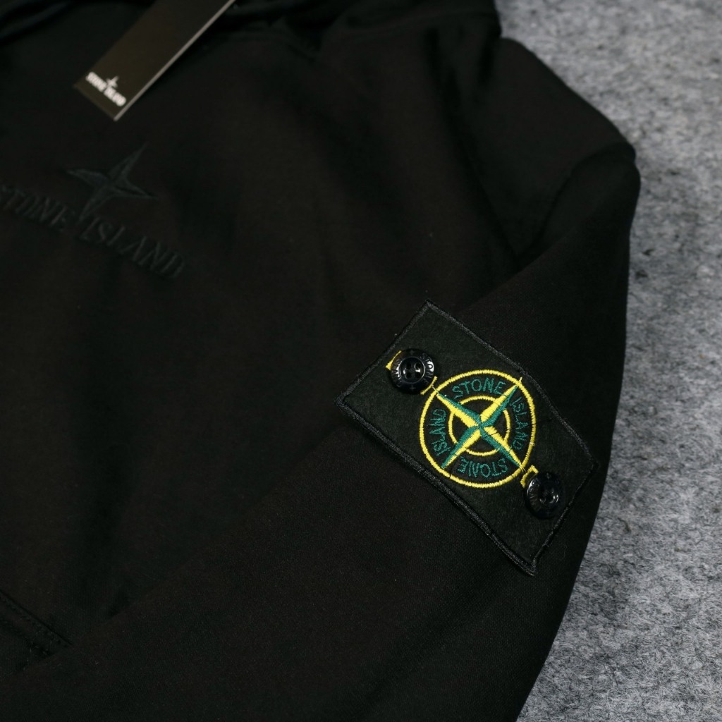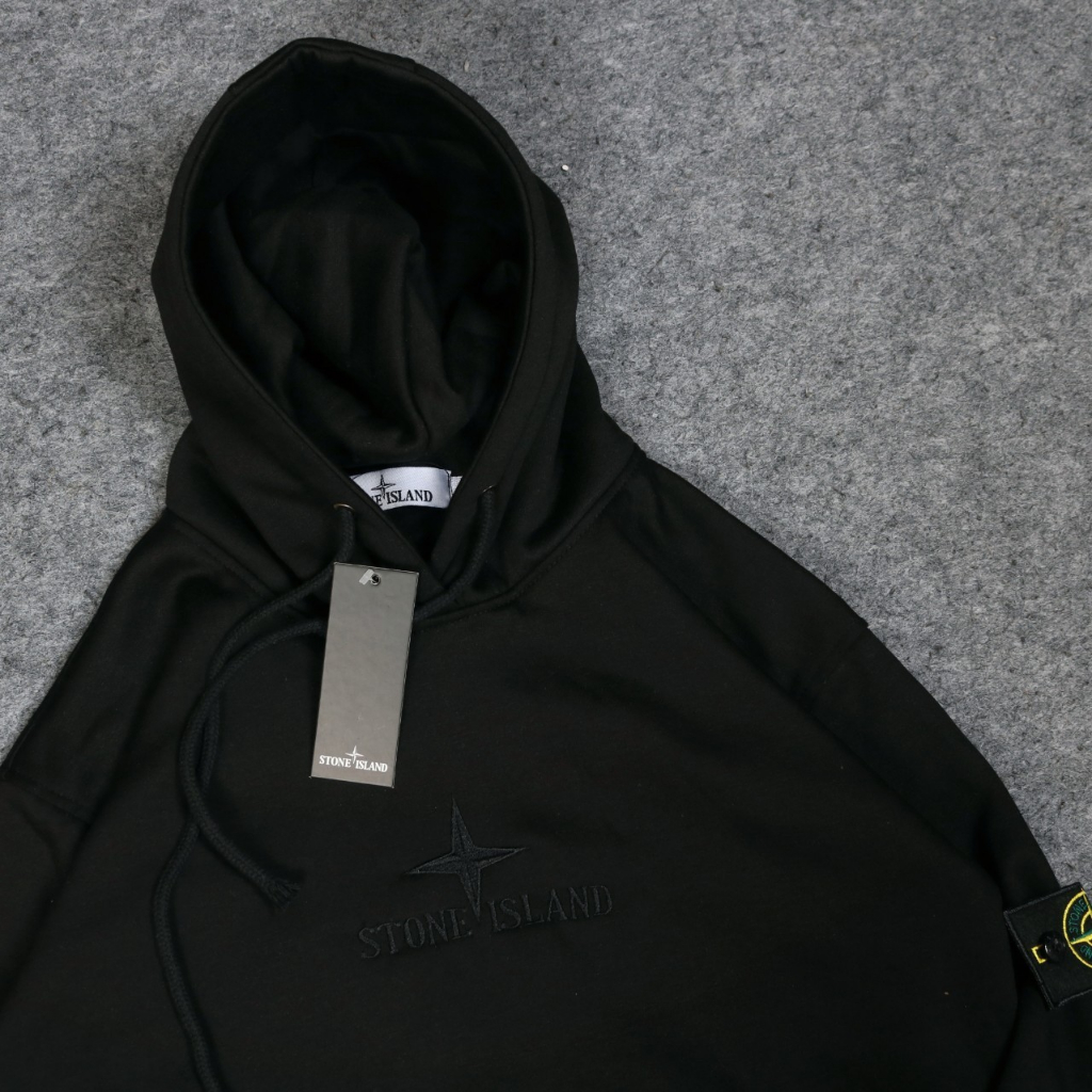 SWEATER HOODIE TERBARU STONE FULL BLACK BORDIR