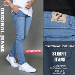 Celana jeans pria Bahan streach melar pensil Slimfit cowok panjang