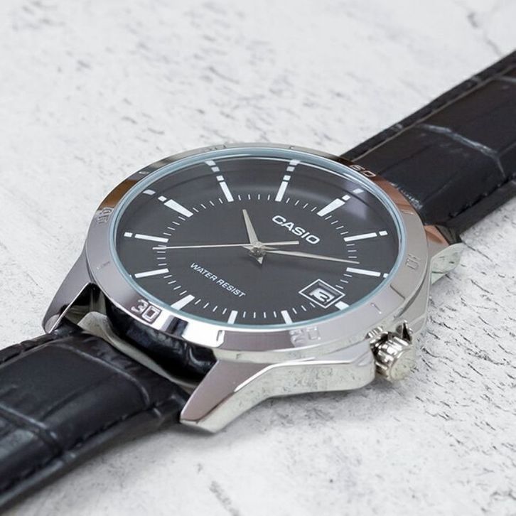 JAM TANGAN PRIA CASIO MTP-V004L-1A ORIGINAL - MTPV004L HITAM GARANSI RESMI BRANDED PREMIUM