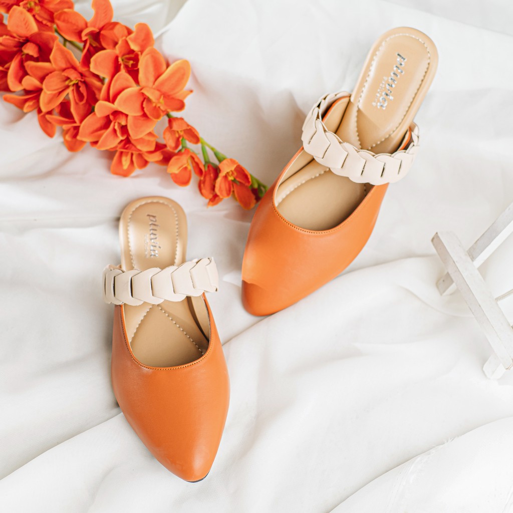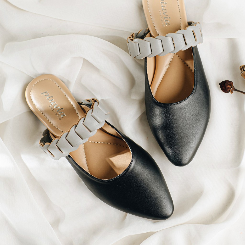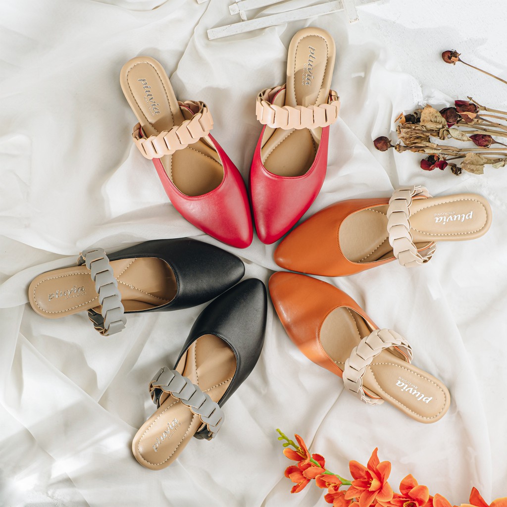 SENDAL PLUVIA KATNIS SEPATU FLAT SHOES SLIP ON MULES WANITA