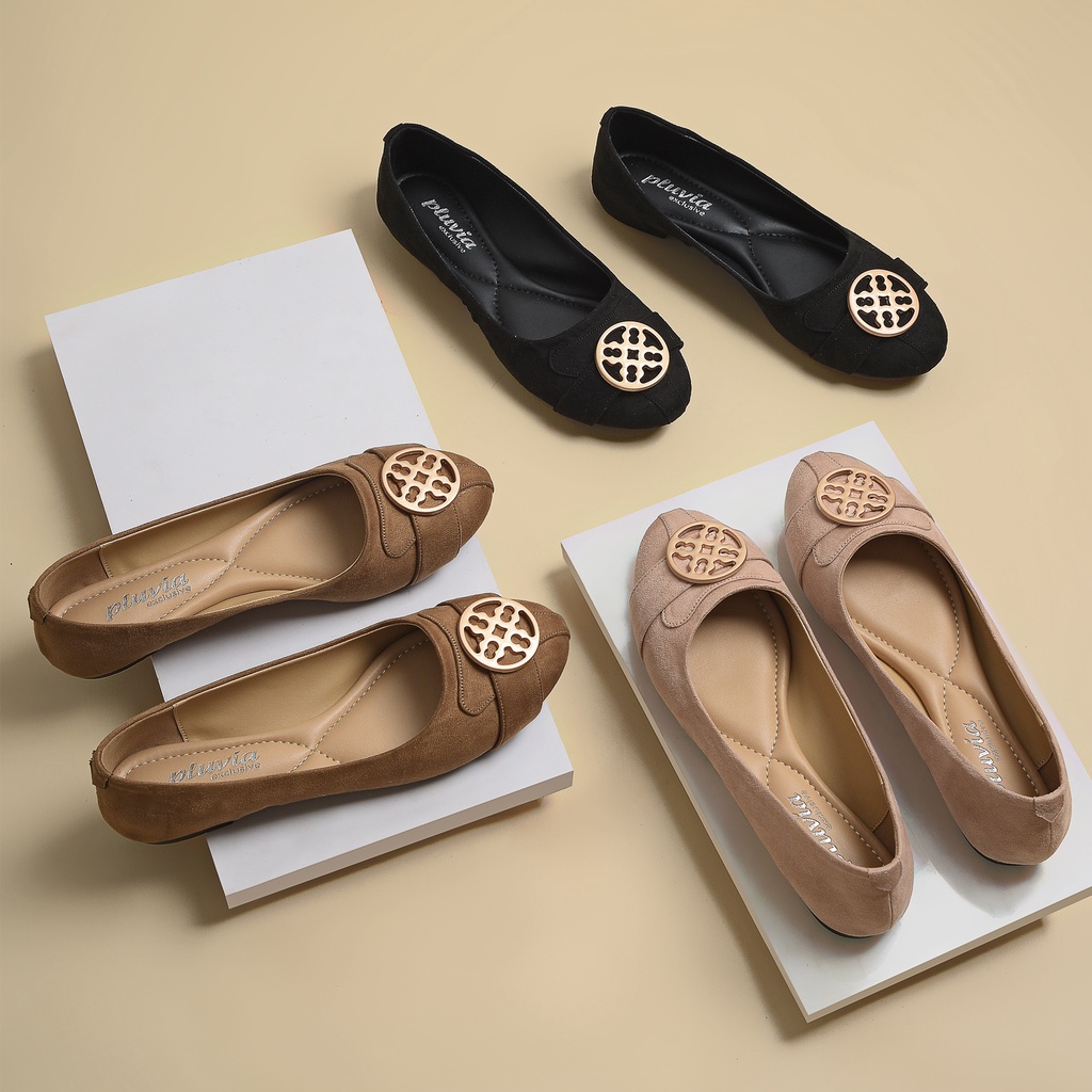 SENDAL PLUVIA KEIKO SEPATU FLAT SHOES WANITA FLATSHOES BALET SUEDE