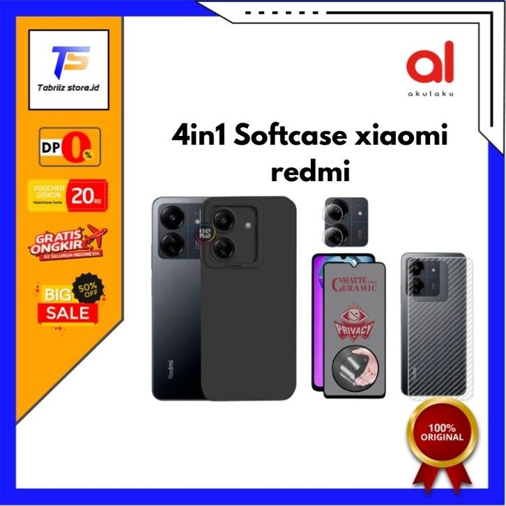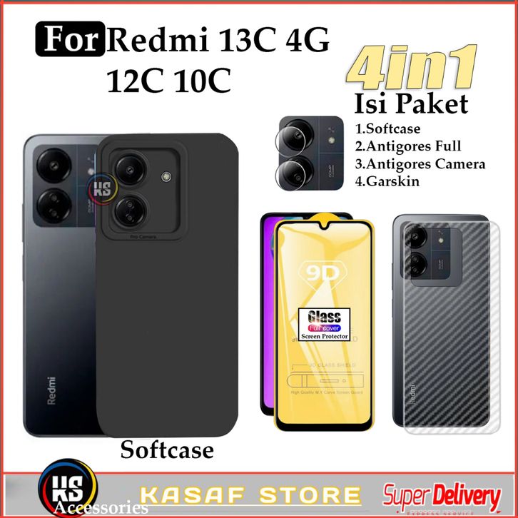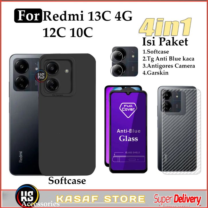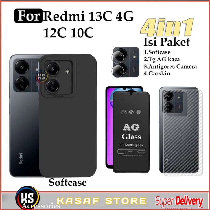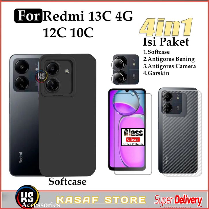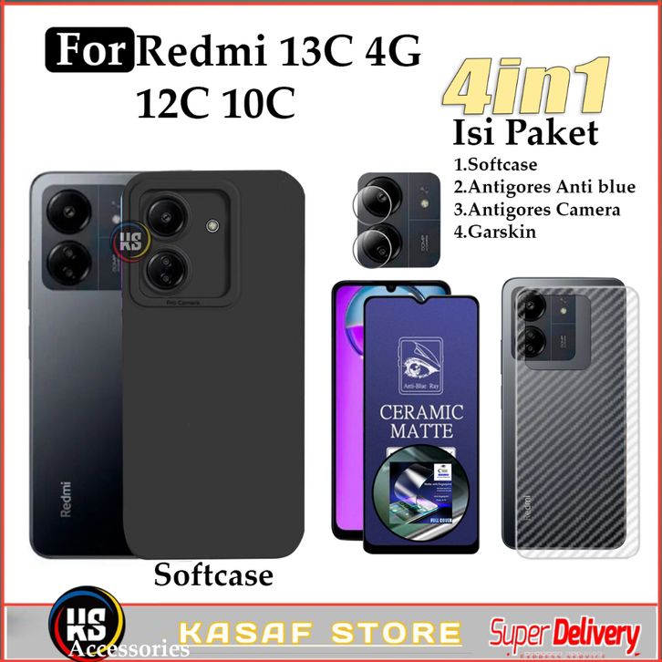 4in1 Softcase Xiaomi Redmi 13C 12C 10C - Casing + Anti-spy Privacy Screen Protector + GarSkin + Tempered Camera