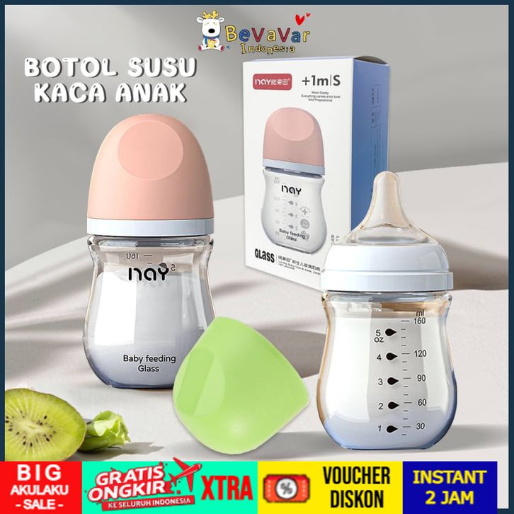 Botol susu bayi Kaca dot botol susu bayi newborn 0-3bulan Baby bottle wide neck 160ml
