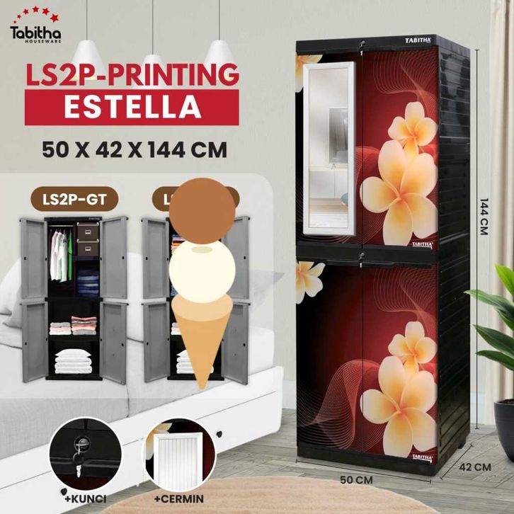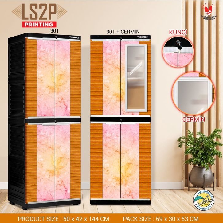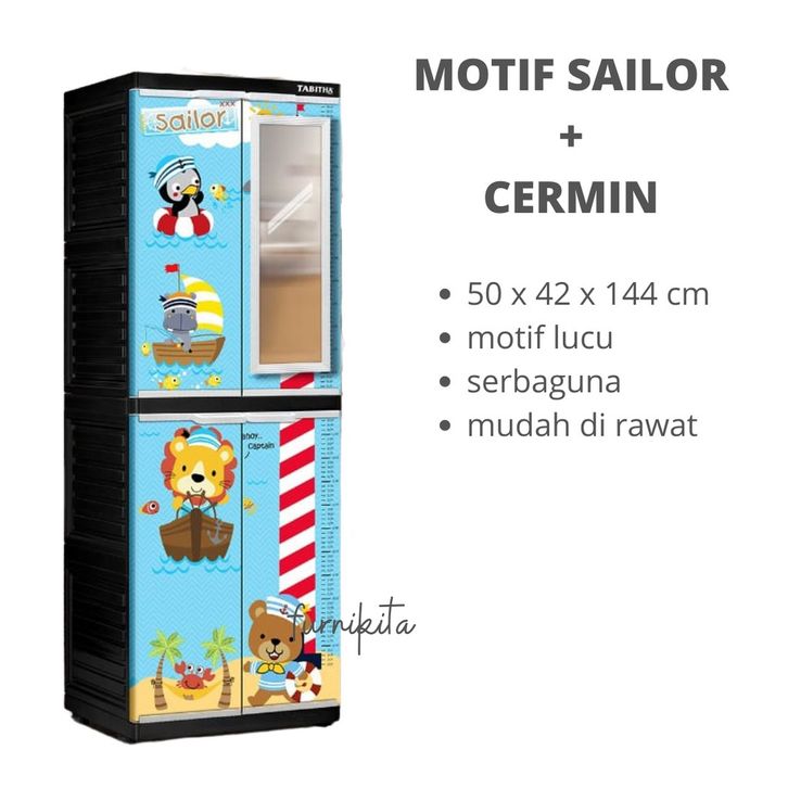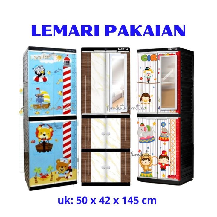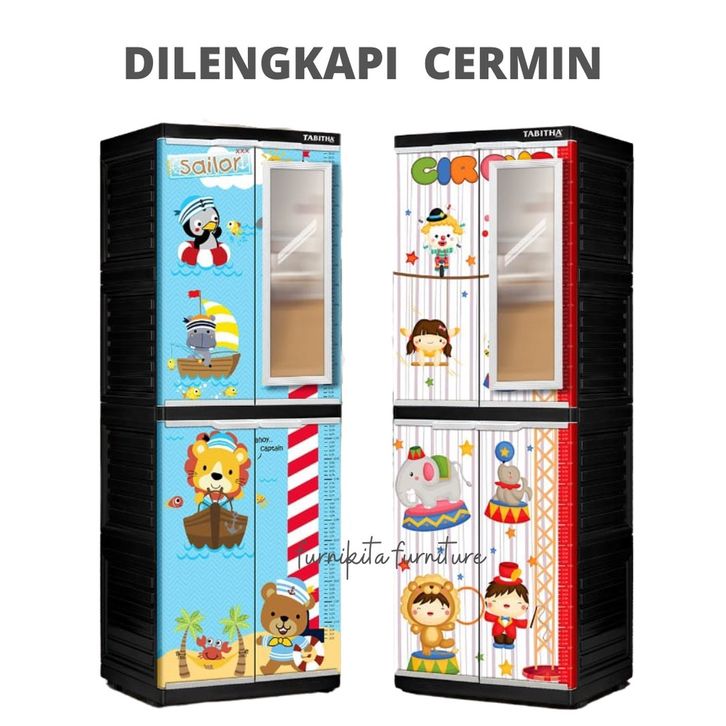 LEMARI PAKAIAN PLASTIK TABITHA DENGAN CERMIN KARAKTER FULL KUNCI
