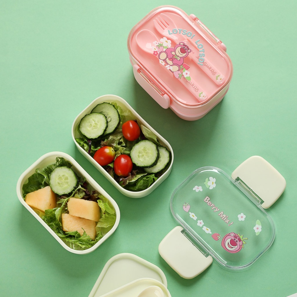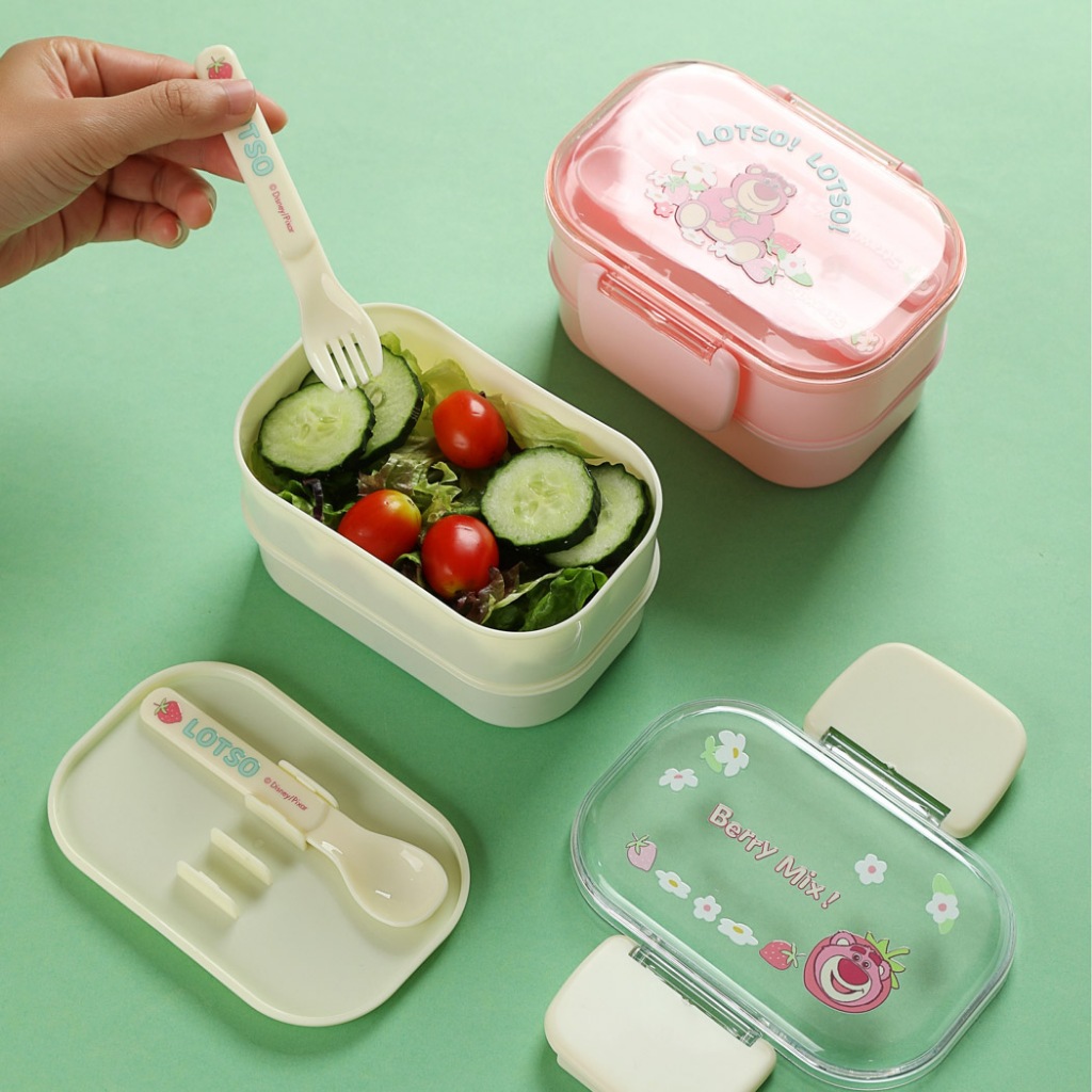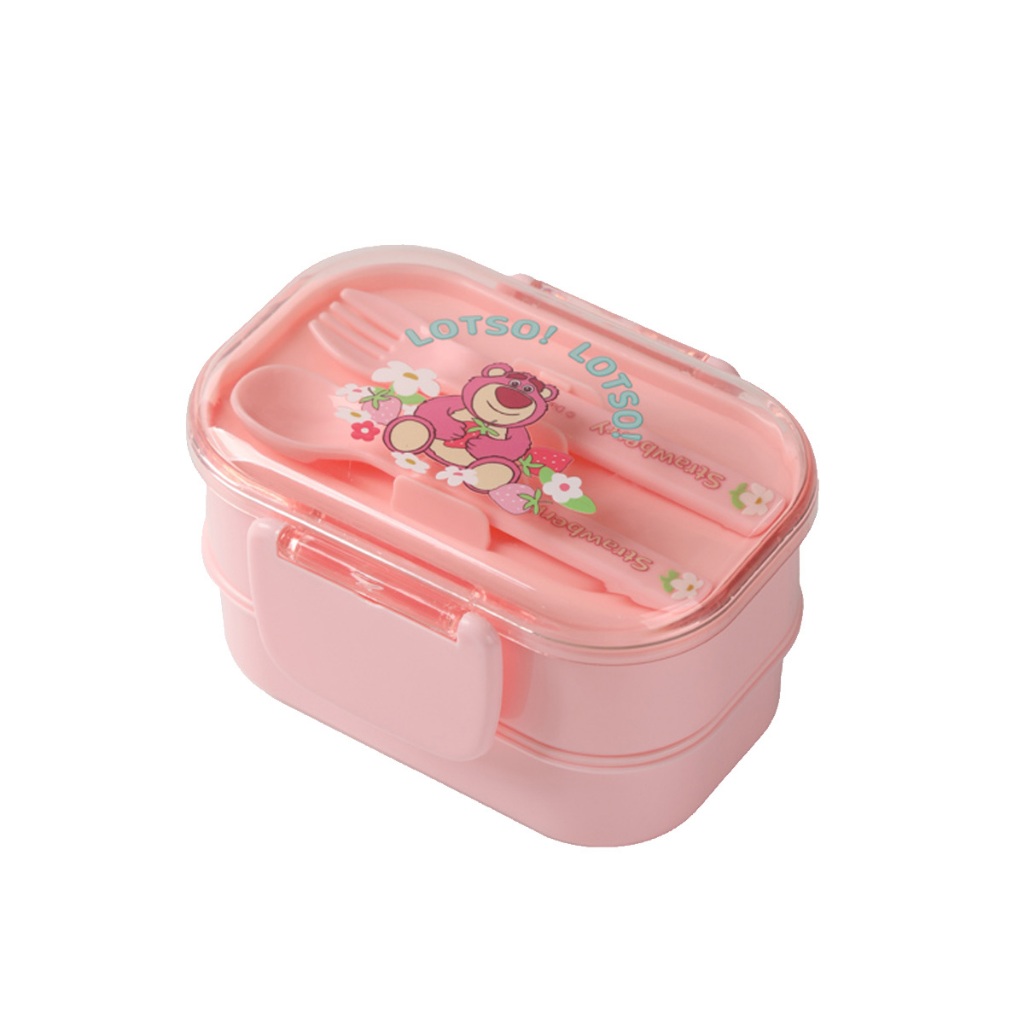 MINISO X Diseny Lotso Kotak Makan Dua lapisan degan Garpu Sendok Bento Lunchbox 510ml