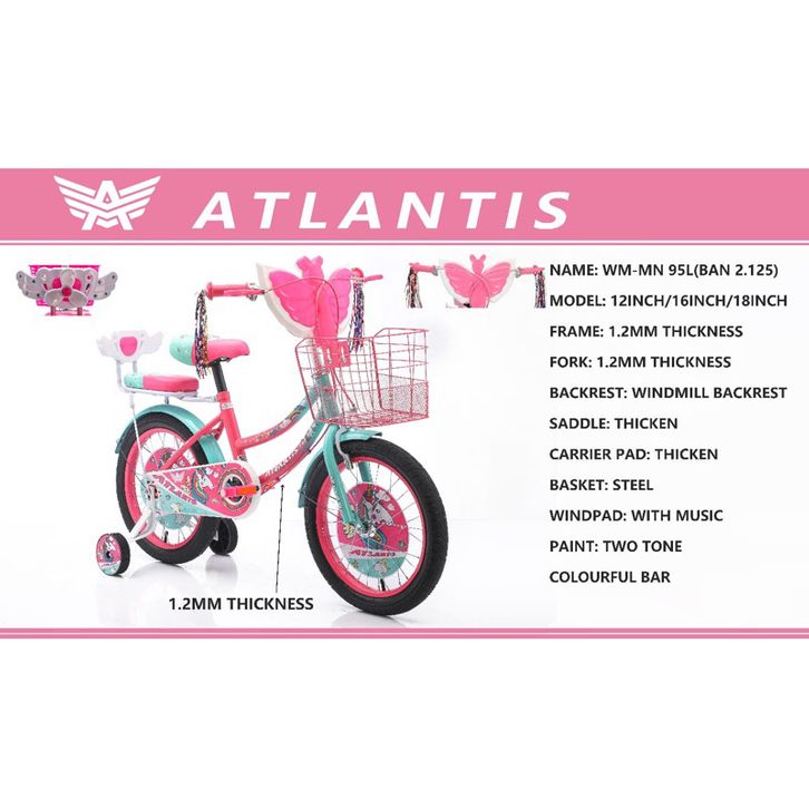 SEPEDA ANAK PEREMPUAN 16 | 18 INCH TREX UNICORN | TRENDY |ATLANTIS | CENTRUM |PONYKU BEST SELLER