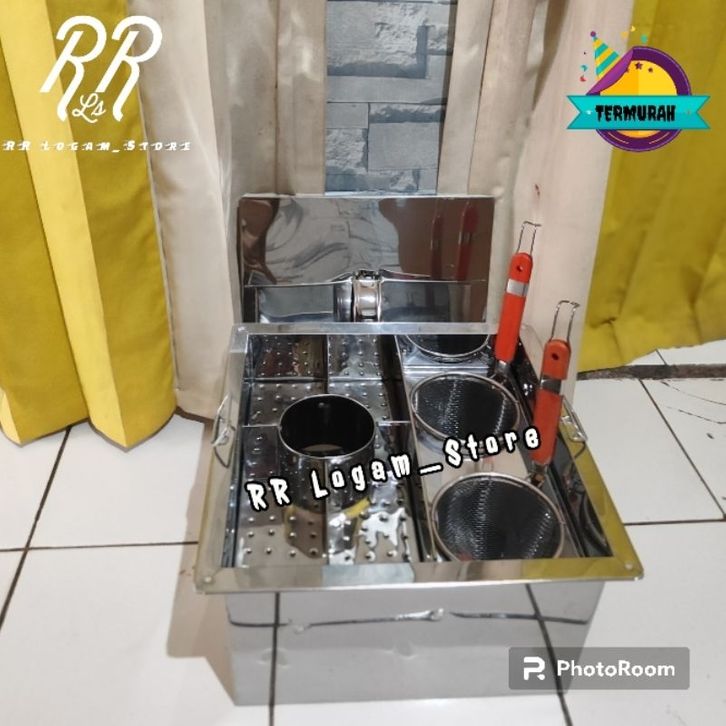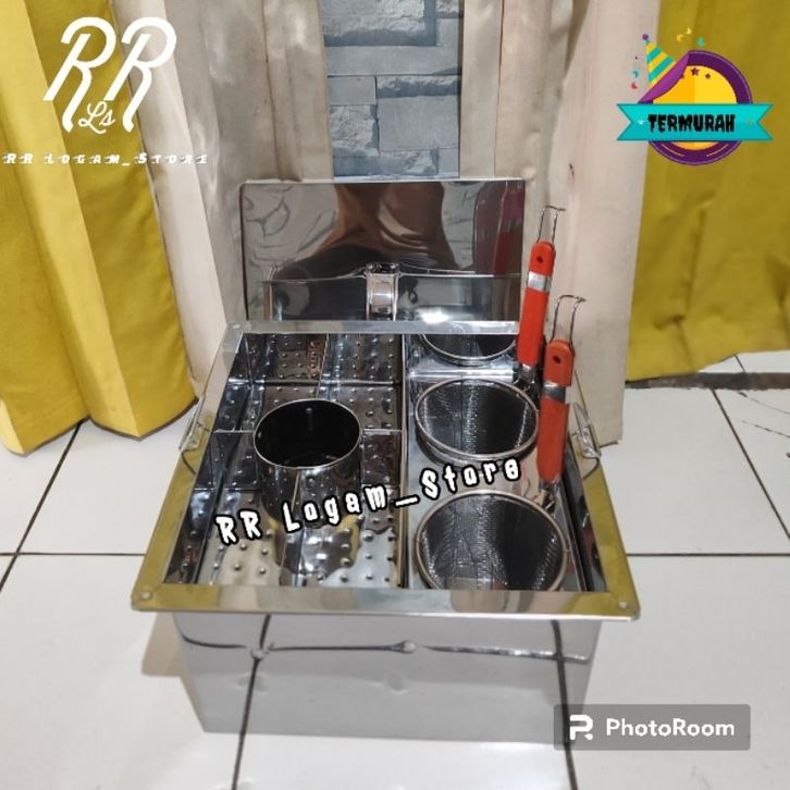 Dangdang mie ayam 2 lubang Dandang Mie Ayam Lubang 2 Stainless Lengkap Plus Sekat Bakso Panci Mie Ayam Tong Mie Ayam