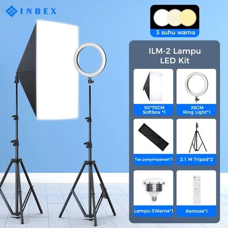 SOFTBOX LIGHTING ILM2 6000K LAMPU 3 SUHU WARNA UNTUK VLOG KONTEN LIVE FOTO SOFTBOX / LAMPU RINGLIGHT JUMBO TRIPOD KONTEN
