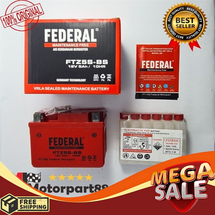 Aki Kering Aki Motor GTZ 5S GTZ-5S 12V 5AH / 10HR FEDERAL
