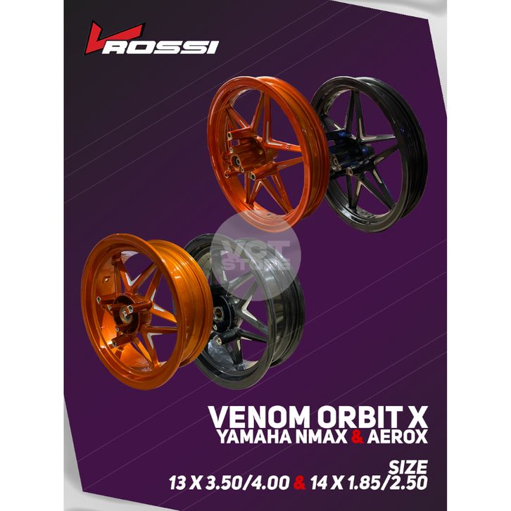 Velg Racing Velg Motor VRossi Velg Racing PALANG 6 BINTANG VENOM ORBIT X Yamaha NMax Old & Aerox | Black Chrome/ Orange