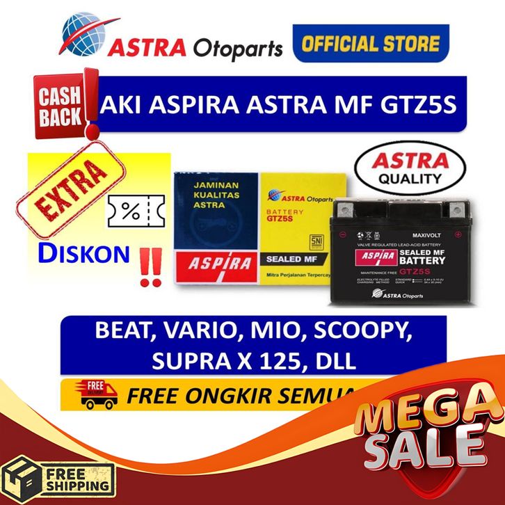 [Mall] Aki ASPIRA Astra GTZ5S MF(3.5 Ah)-Aki Motor Vario,Beat,Mio,Scoopy,Vixion,Xride,dll