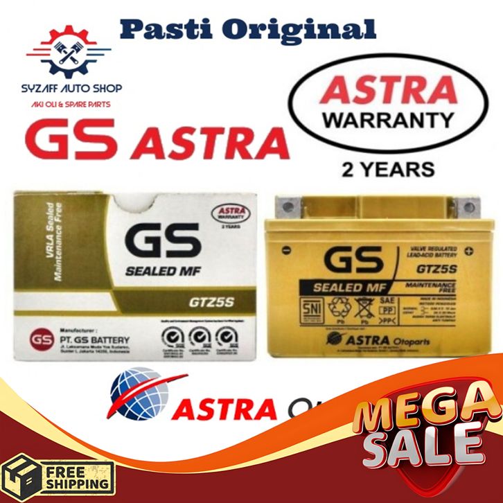 Aki GTZ5S GS ASTRA gold aki Vario, aki Beat, scoopy,Revo, aki Supra X 125, aki Mio m3, aki Vixion,