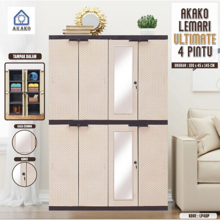 Lemari Full RAK Jumbo + Kaca + Kunci Motif Ultimate Large & Extra Large motif Rotan Anyaman