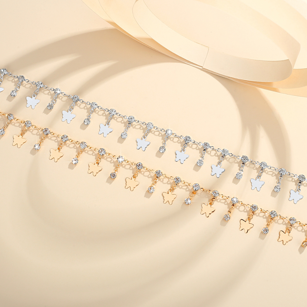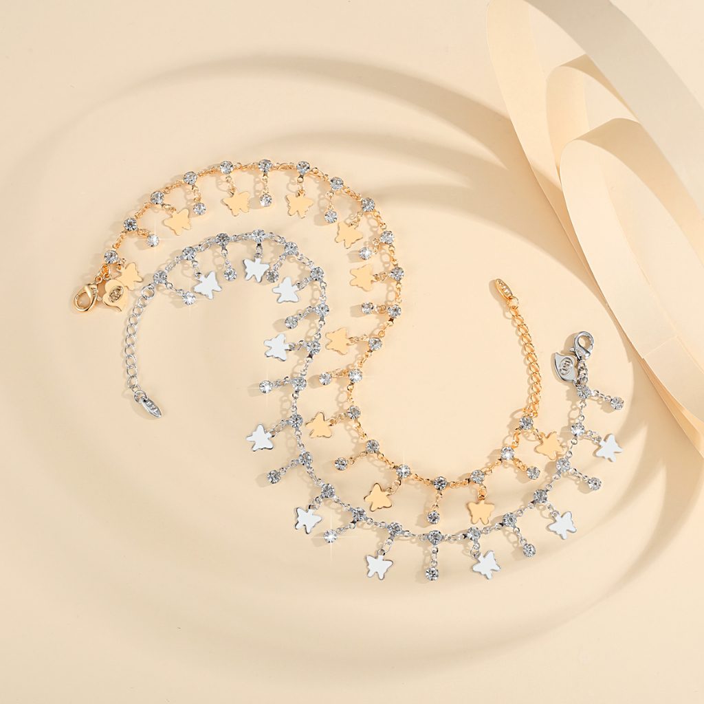 Lanme Jewelry Ge lang Kaki Rantai Wanita Lapis Em as Berlian Liontin Kupu-Kupu Gelang Kaki Titanium Rantai Adjustable