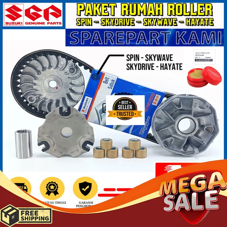 PAKET CVT VANBELT + RUMAH ROLLER SET + KIPAS RUMAH ROLLER SPIN 125 SKYDRIVE SKYWAVE HAYATE