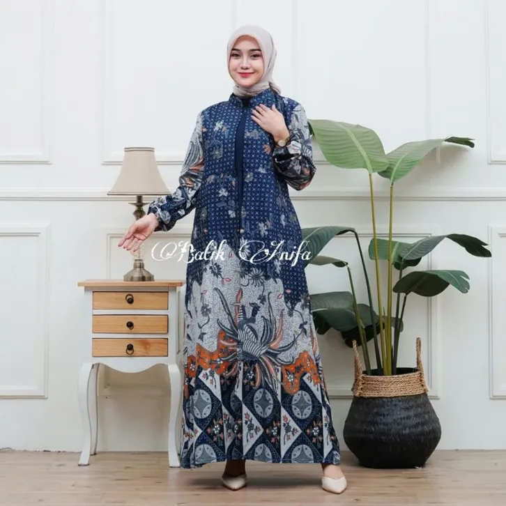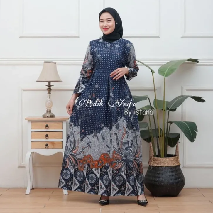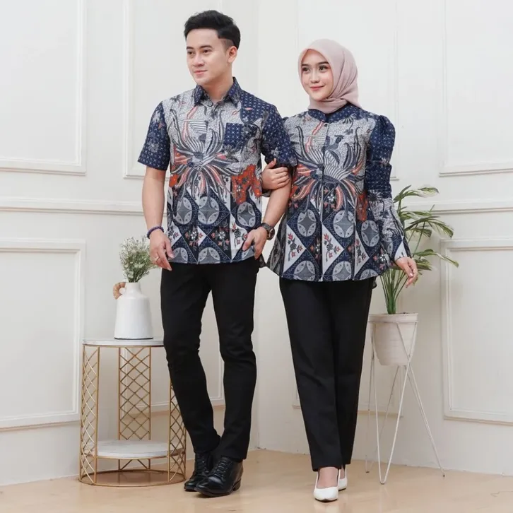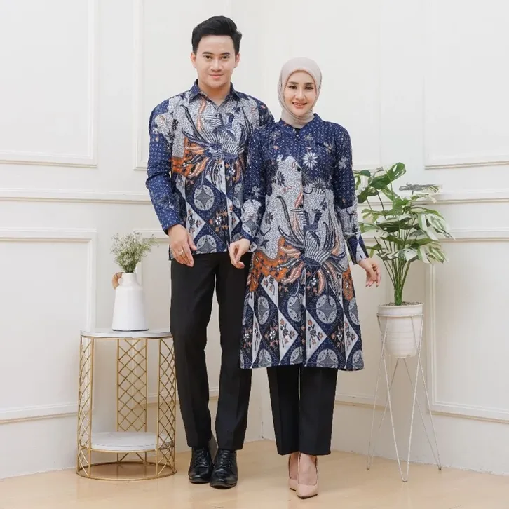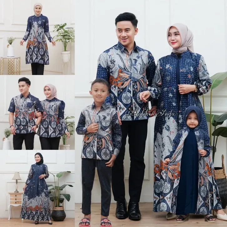 BAJU LEBARAN 2026 PRIA WANITA COUPLE KELUARGA KEMEJA GAMIS PRIA WANITA BAHAN KATUN PREMIUM MOTIF NAVY